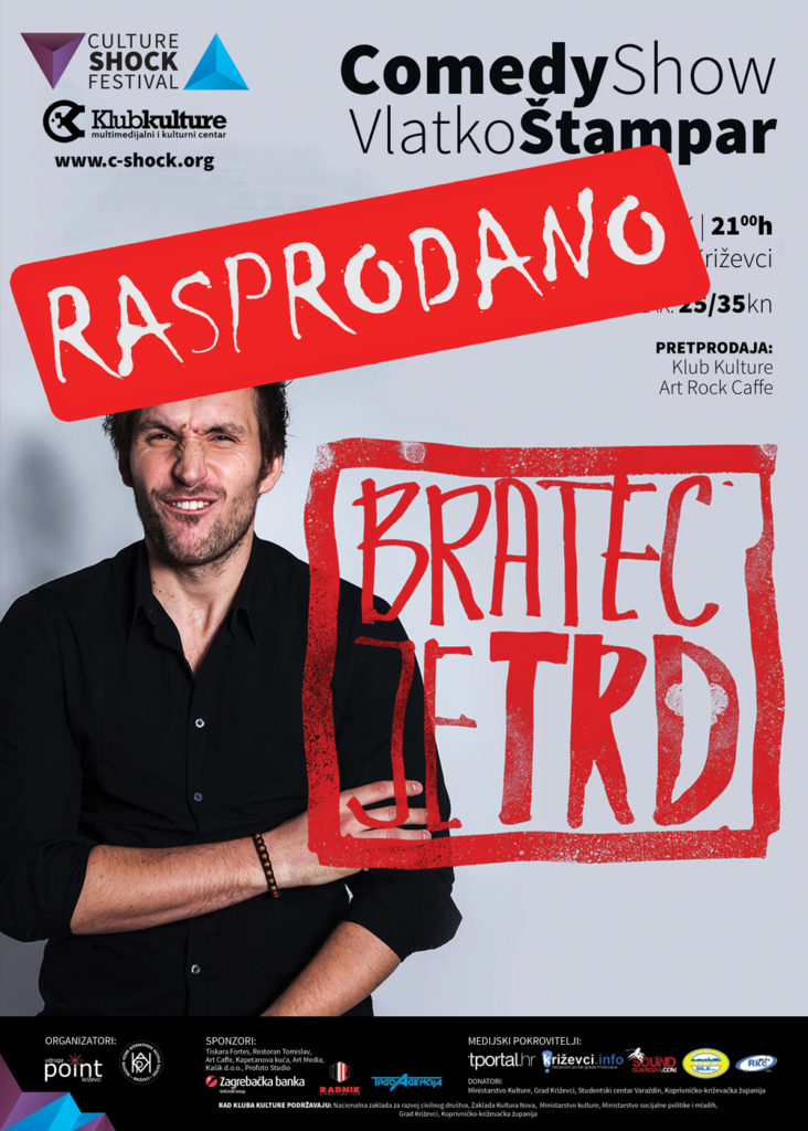 Kako smo i najavili, večerašnji stand-up show Vlatka Štampara u križevačkom Klubu kulture je rasprodan! Prema reakcijama i upitima, križevačka publika jedva čeka predstavu! Znate zašto? Zbog Vlatkova načina na koji priča o odrastanju, problemima u školi, dolasku u Zagreb iz rodnog Čakovca, muško-ženskim odnosima, seksu i drugim, globalno zanimljivim temama. Njegova bogata mašta, te pomaknut i iznimno duhovit pogled na svijet otkrivaju komičara koji će vas, vjerovali ili ne, nasmijati više od svih članova Vlade RH zajedno!