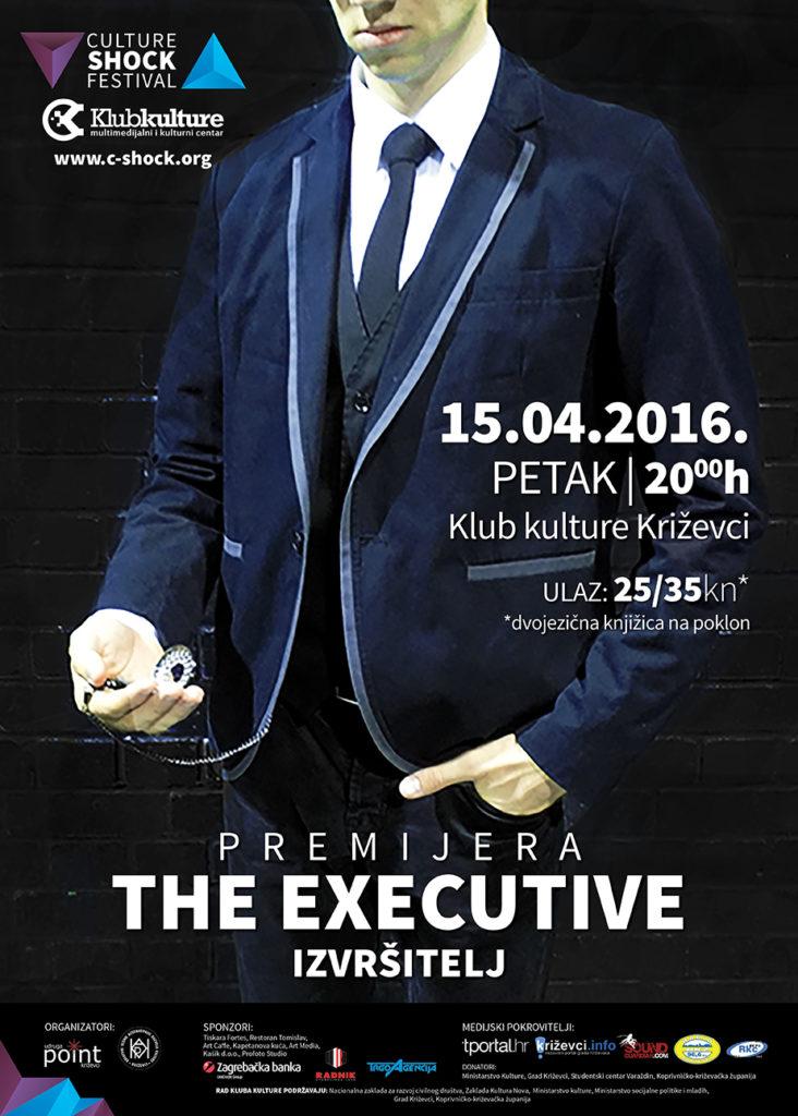 U petak 15. travnja 2016. godine u križevačkom Klubu kulture s početkom u 20 sati odigrat će se premijera kazališne predstave “The Executive / Izvršitelj” mlade britanske autorice Elinor J. Boult, u kojoj igra i režiju potpisuje Josip Martinčić, devetnaestogodišnji Križevčanin, student engleske književnosti i dramaturgije na prestižnom Sveučilištu u Londonu. Jedina je ovo kazališna predstava u sklopu ovogodišnjeg, 12. Culture Shock Festivala, koji organiziraju križevačke udruge P.O.I.N.T. i K.V.A.R.K., a jedna od posebnosti je njena izvedba na engleskom jeziku.