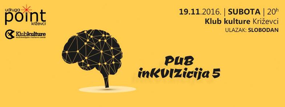 Isti prostor, ista pravila, ali više pitanja i više odgovora. Jedan je unaprijed poznat: Pub inKVIZicija u svojoj drugoj sezoni i petoj epizodi u Križevcima ne suzdržava se djelovanja na otkrivanju progresivnih snaga kvizofilstva. Ponovno ih traži iduće subote, 19. studenoga 2016., u Klubu kulture od 20 sati.