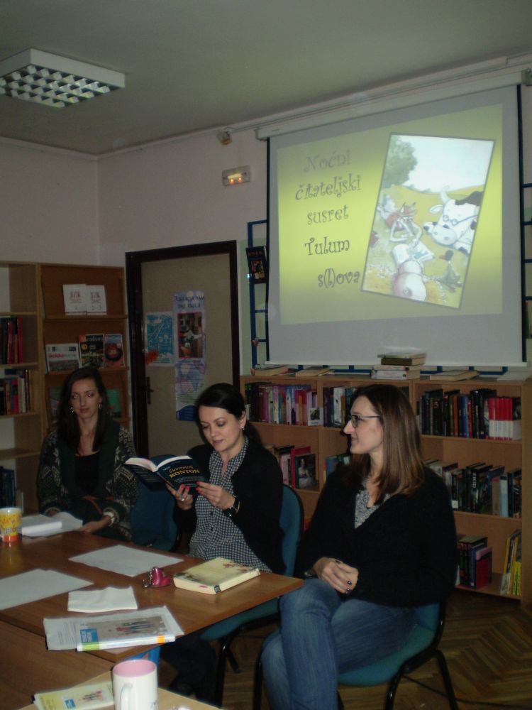 Križevačka gimnazija u projektu sudjeluje od samoga početka, tj. svih šest godina zaredom, a u projekt su se uključile i ostale dvije križevačke srednje škole. Iako su okviri programa zadani od organizatora, svaka škola daje osobni pečat projektu osmišljavajući svoj vlastiti program. Tako su u pripremi ovogodišnjeg noćnog čitateljskog susreta u Gimnaziji sudjelovale profesorice Sanela Štubelj, Sanela Starešec, Suzana Knežević i Mateja Hanžić, a Tulumu s(l)ova pridružio se i ravnatelj Gimnazije prof. Zoran Kovač koji je s učenicima rado podijelio vlastita čitateljska iskustva.
