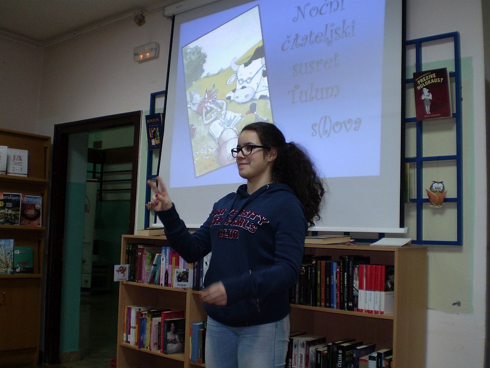 Križevačka gimnazija u projektu sudjeluje od samoga početka, tj. svih šest godina zaredom, a u projekt su se uključile i ostale dvije križevačke srednje škole. Iako su okviri programa zadani od organizatora, svaka škola daje osobni pečat projektu osmišljavajući svoj vlastiti program. Tako su u pripremi ovogodišnjeg noćnog čitateljskog susreta u Gimnaziji sudjelovale profesorice Sanela Štubelj, Sanela Starešec, Suzana Knežević i Mateja Hanžić, a Tulumu s(l)ova pridružio se i ravnatelj Gimnazije prof. Zoran Kovač koji je s učenicima rado podijelio vlastita čitateljska iskustva.