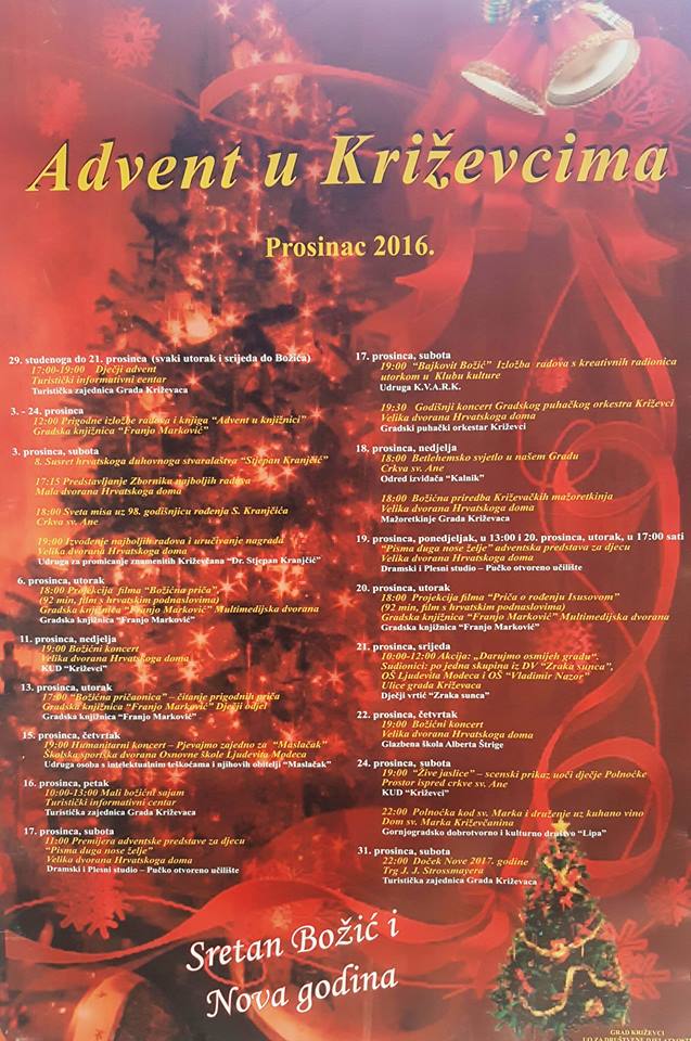 NOVA GODINA PRED VRATIMA Grad Križevci objavili su na službenim stranicama adventski program koji će građanima podići blagdansko raspoloženje.