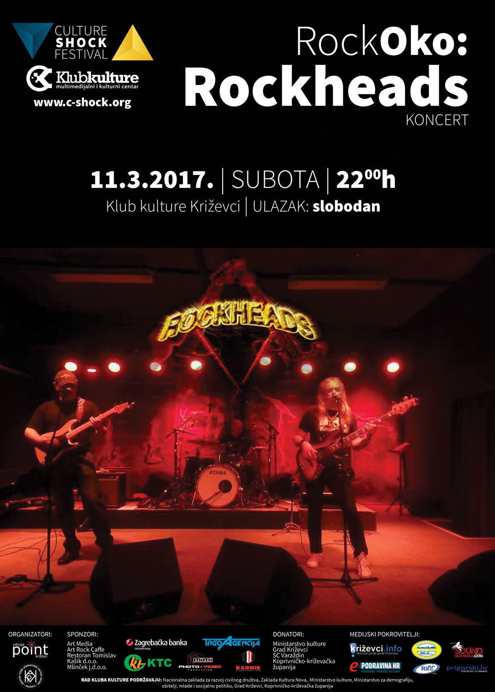 Ove subote radijska emisija Rock oko u Klubu kulture slavi 21 godinu postojanja i 900. emisiju emitiranja na Radiju Križevci. Tim povodom slušatelji te kultne emisije, kao i svi ljubitelji rock veselica pozvani su na besplatni koncert zagrebačke trojke Rockheads.