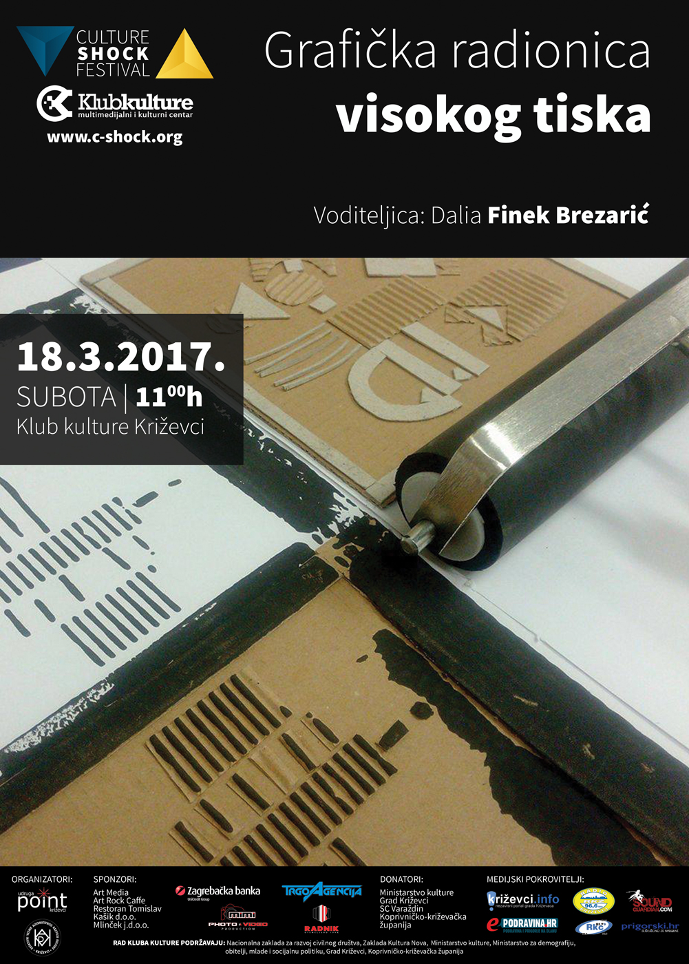 Druga radionica ovogodišnjeg kulturno-obrazovnog festivala Culture Shock, namijenjena je onima koje zanima grafika i mogućnosti koje pružaju tehnike visokog tiska.