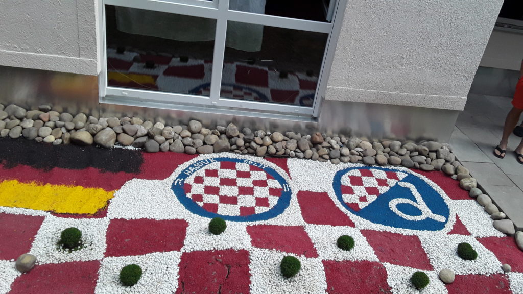 Na dan državnosti Republike Hrvatske u njemačkom gradu Leonbergu osvanuo je zanimljiv mozaik. Djelo je to, gotovo umjetničko, našeg sugrađanina, 40-godišnjeg Dejana Viška koji se nalazi na privremenom radu u Njemačkoj. Ukrasnim kamenjem u boji na svojevrstan je način oslikao šahovnicu i grbove nogometnih klubova Hajduka i Dinama te njemačku zastavu. Kao strastveni navijač Dinama svojim je mozaikom želio poslati poruku. Ogorčen je sramotnim ponašanjem pojedinaca, kako u krovnim institucijama hrvatskog sporta, tako i u sportu. Općenito, žali zbog stanja u domovini, ali se nada boljemu.