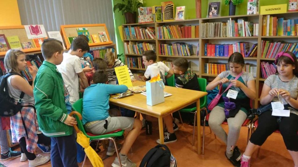 Kreativne uratke koje su učenici sami izradili međusobno su si i poklonili. Kasnije smo razgledali knjižnicu i spomen sobu Domovinskog rata. Ravnateljica Marijana Žulj pokazala nam je knjigu poznatog slovenskog polihistora J. V. Valvasora što je slovenske goste posebno oduševilo jer se nisu nadali da knjižnica ima u posjedu tako vrijednu knjigu.