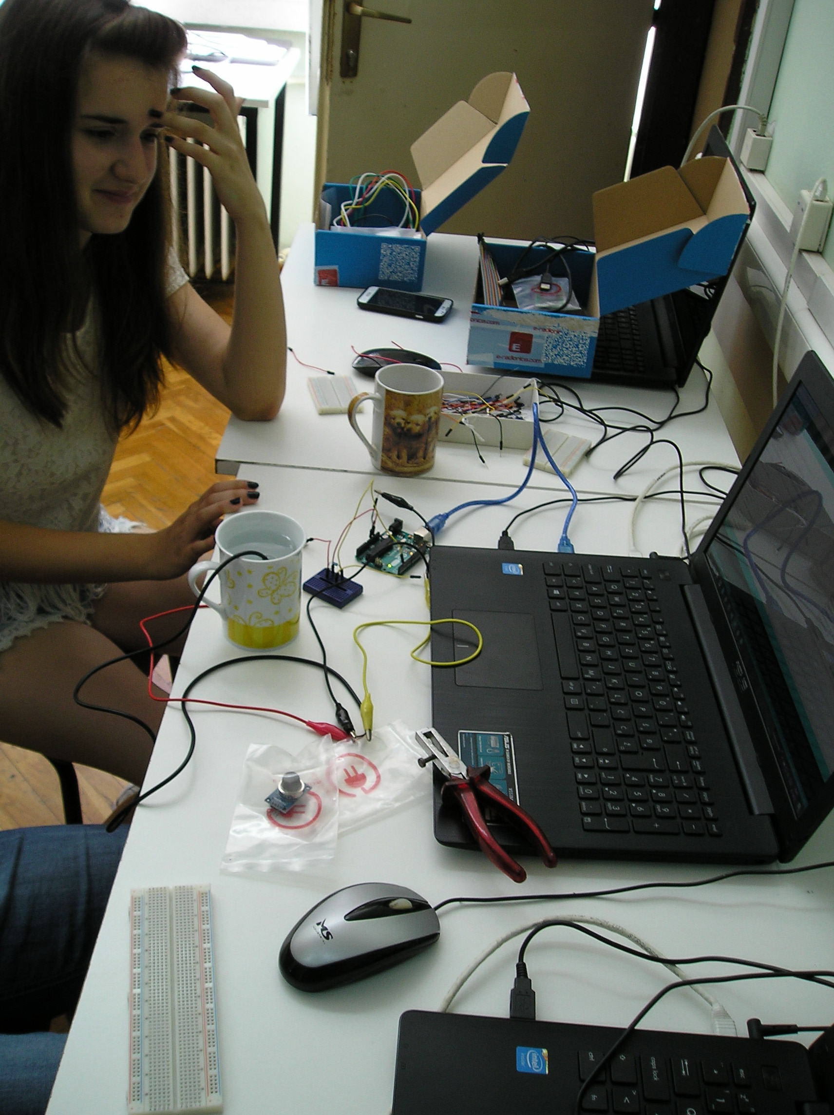 U subotu, 8. srpnja 2017. održana je prva u nizu ljetnih Arduino radionica u Gimnaziji Ivana Zakmardija Dijankovečkoga Križevci. Na ovoj radionici gimnazijalci su se bavili mjerenjem temperature i vlage zraka, kvalitete zraka, te mjerenjem temperature tekućina. Na idućim radionicama teme će biti određivanje pH tekućina, temperatura tla, brzina i smjer vjetra te mjerenje količina padalina.