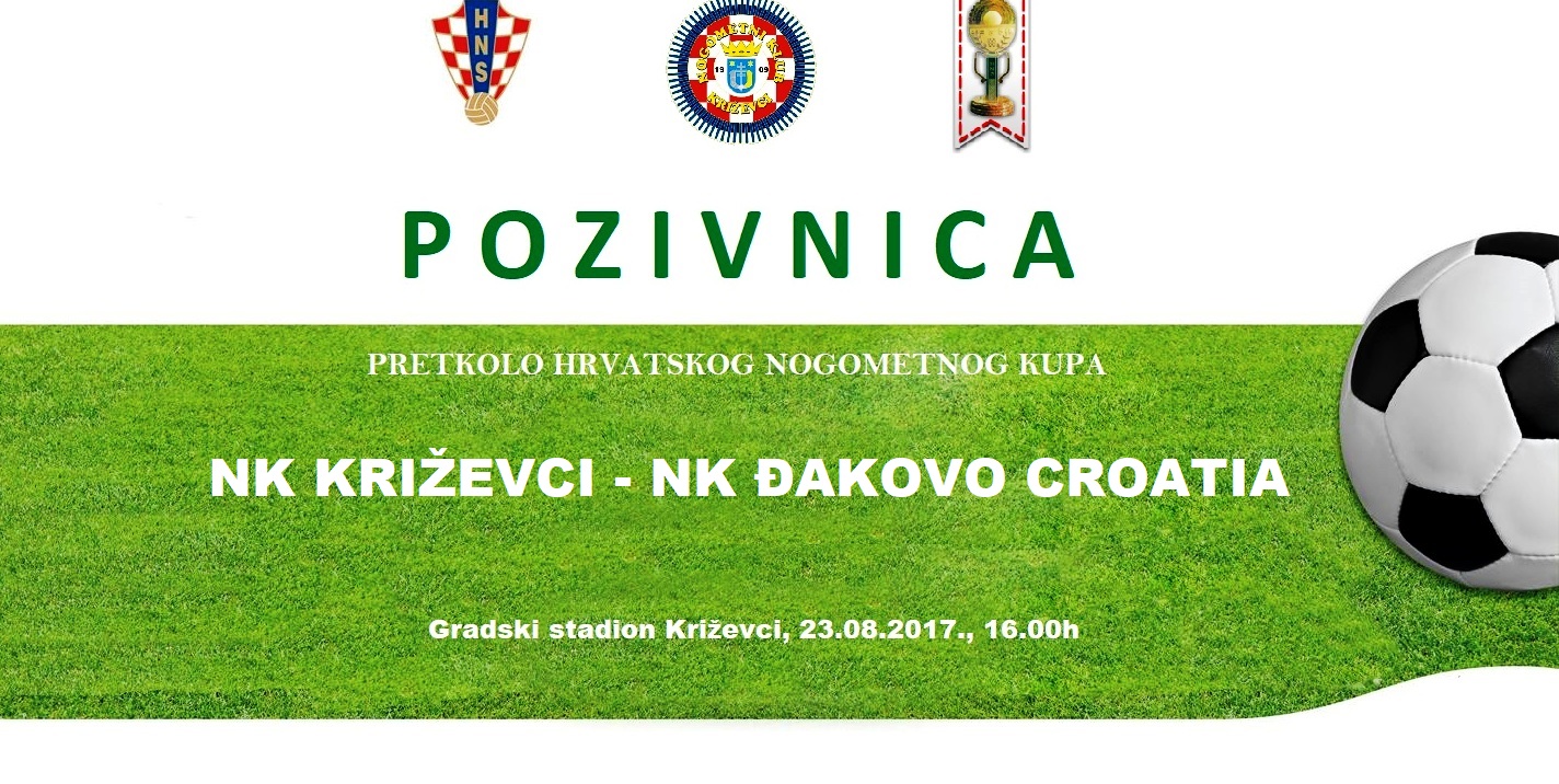 U srijedu, 23. kolovoza 2017. na Gradskom stadionu u Križevcima u 16 sati će se odigrati utakmica pretkola Hrvatskog nogometnog kupa između NK Križevci i NK Đakovo Croatia. Križevački su nogometaši tijekom kolovoza odigrali više pripremnih utakmica i prijateljskih susreta kao uvertiru u ovu važnu utakmicu.