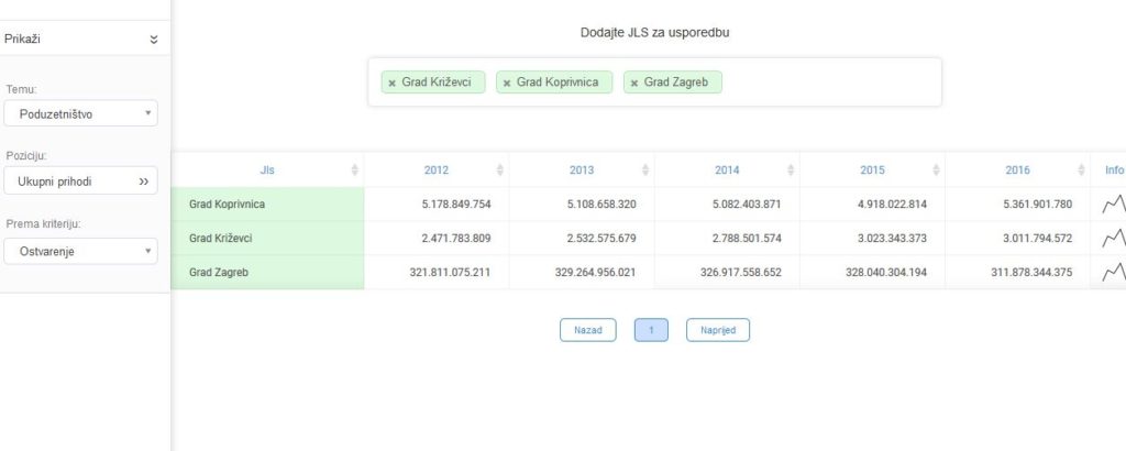 Za prikaz kretanja poduzetništva i visine prihoda u Križevcima poslužili smo se ilustracijama aplikacije Croračun, u izdanju tvrtke Coin iz Pule. Croračun “pruža jedinstveni pogled na lokalnu i regionalnu samoupravu kroz prikaz i usporedbu ekonomskih, proračunskih, demografskih i socijalnih pokazatelja”. Podaci za aplikaciju CROračun prikupljaju se iz sljedećih izvora: Ministarstvo financija, Državni zavod za statistiku, Hrvatski zavod za zapošljavanje, Hrvatski zavod za mirovinsko osiguranje, FINA i drugi javni izvori i portali. Informacije koje aplikacija pruža općeg su i informativnog karaktera s ciljem promoviranja transparentnosti na razini jedinica lokalne samouprave te povećanja njihove kompetitivnosti i produktivnosti.