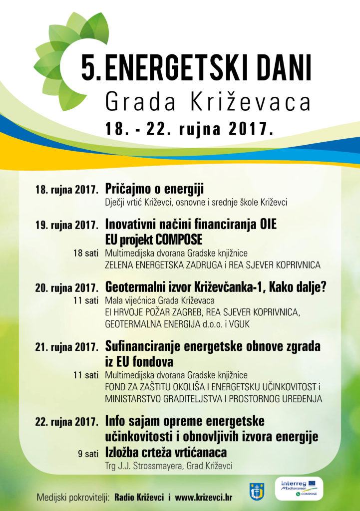 Od 18. do 22. rujna 2017. godine održavaju se već tradicionalni 5. Energetski dani Grada Križevaca, s ciljem upoznavanja građana s obnovljivim izvorima energije i energetskom učinkovitošću. Ove godine Energetski dani okrenuli su se najmlađima pa će se tako u vrtićima i školama organizirati radionice s djecom kako bi ih se upoznalo na koji način mogu racionalno koristiti energiju. U sklopu programa bit će organiziran Info sajam opreme energetske učinkovitosti i obnovljivih izvora energije koji će se održati u petak, 22. rujna s početkom u 9 sati na Strossmayerovom trgu u Križevcima.