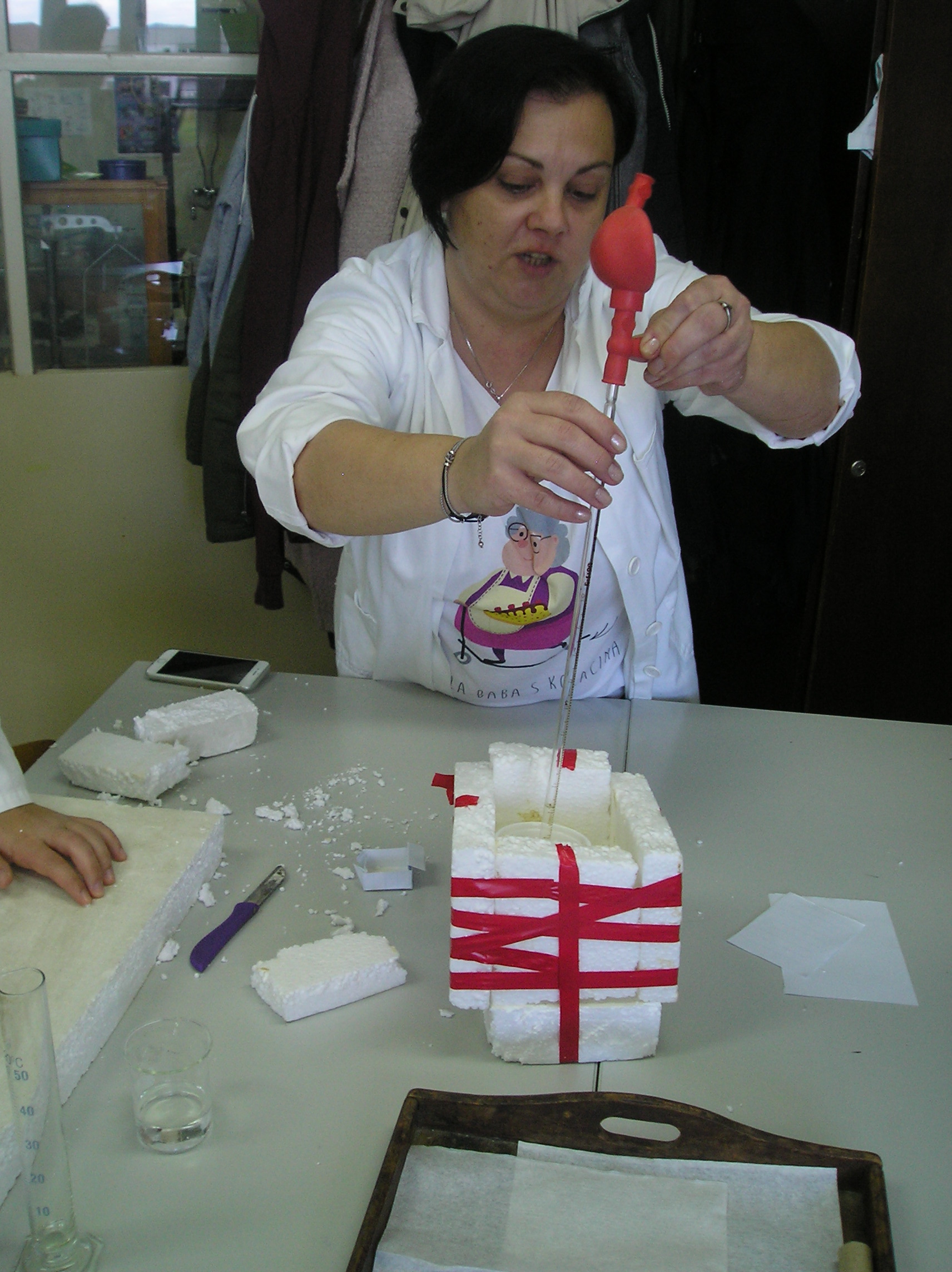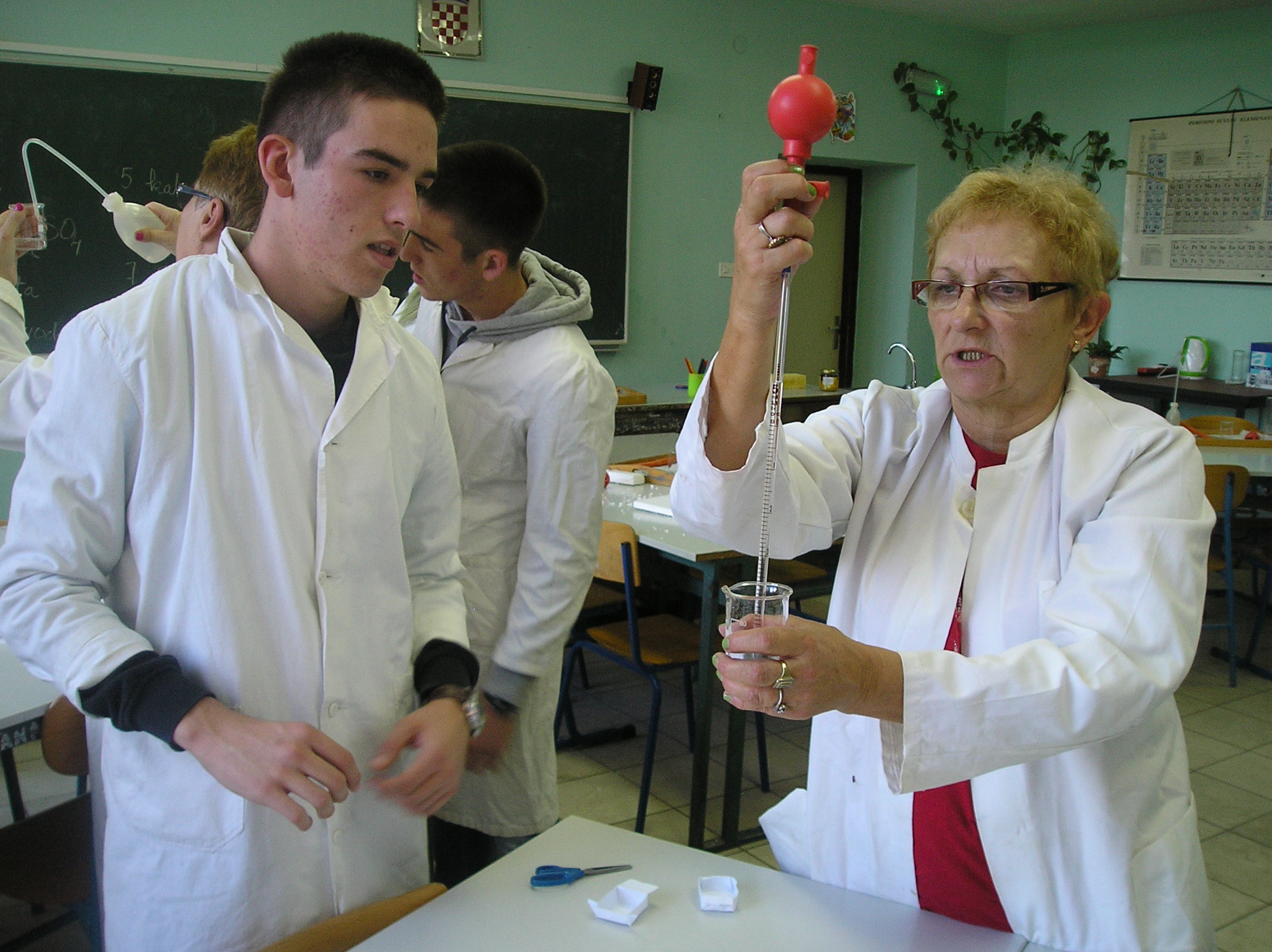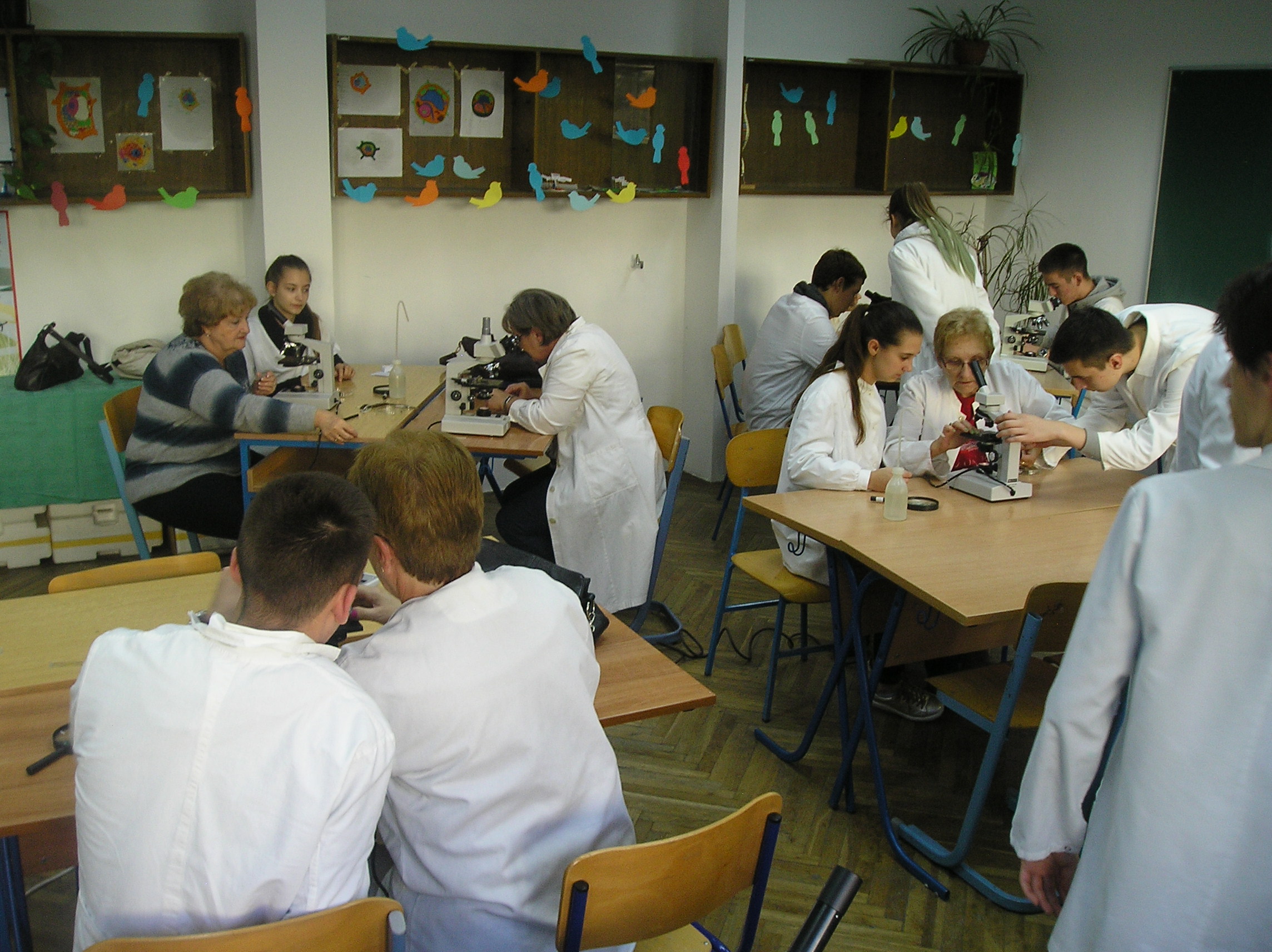 U učionici kemije polaznici 30+ načinili su jednostavan kalorimetar, radili s propipetama i napravili endotermnu kemijsku reakciju, te odredili pH otopine. Biološki dio odrađen je u novoj STEM učionici gdje su polaznici naučili nešto o ptičjim perima, vidjeli gnijezdo grmuše, mikroskopirali peludna zrnca i dijelove muhe, te na kraju riješili kviz preko tableta i pametne ploče.