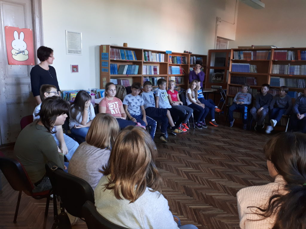 Povodom Mjeseca hrvatske knjige učenice križevačkog Centra za odgoj, obrazovanje i rehabilitaciju, POOS 11-14 godina, učiteljica Mirjana Vrdoljak, knjižničarka Tihana Doskočil i pomoćnice Renata i Mihaela posjetile su školsku knjižnicu Oš Ljudevita Modeca. Školska knjižničarka Romana Erhatić dočekala ih je u društvu učenika 4.d razreda i njihove učiteljice Tanje Kulović Balić.