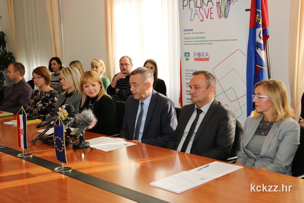 U prostorijama Županijske uprave u utorak, 24. listopada održana je početna konferencija projekta „Prilika za sve 3“ kojim je nastavljena dobra praksa iz prethodne dvije školske godine te je osigurano 56 pomoćnika u nastavi za 62 učenika s teškoćama u razvoju. Projekt je vrijedan 10.147.603,20 kuna, od čega 95% sufinancira Europski socijalni fond kroz Operativni program Učinkoviti ljudski potencijali 2014. – 2020., dok će preostalih 5% osigurati Koprivničko-križevačka županija, a kroz 48 mjeseci ostvarit će se brojni pozitivni učinci za ravnopravno uključivanje učenika s teškoćama u razvoju u obrazovni sustav, kao i osigurati nova zapošljavanja.