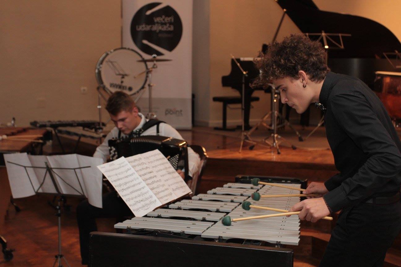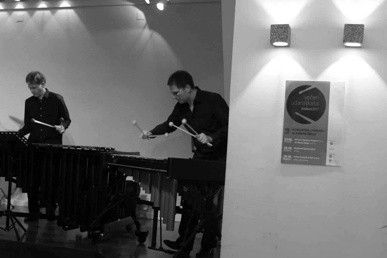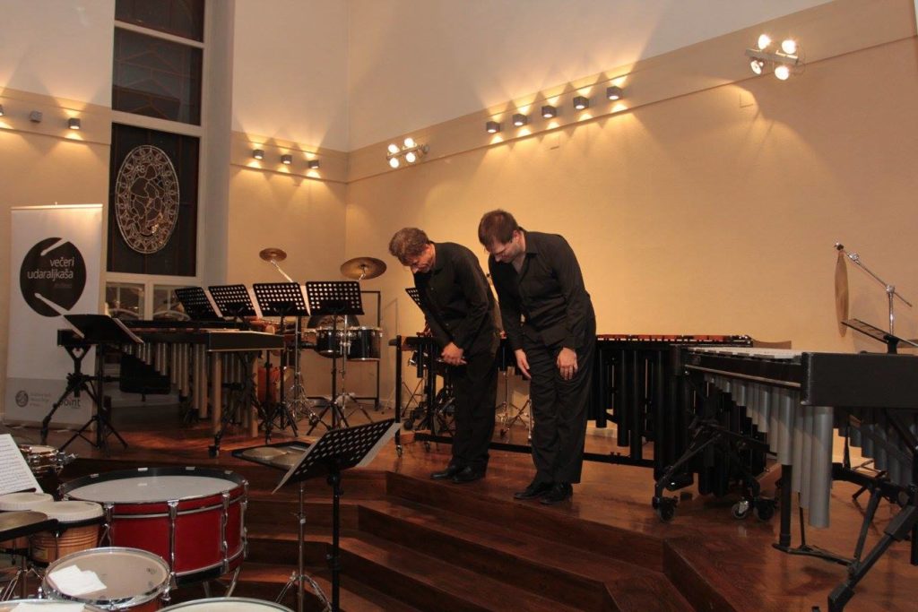 U subotu, 28. listopada publici u ispunjenoj Koncertnoj dvorani predstavili su se profesori udaraljki Srđan Palačković (1968.) i Ivan Marjanović (1981.) koji čine udaraljkaški duo pod nazivom Beogradski perkusionisti. Ansambl je nastao na inicijativu njegovih članova 1997. godine iz želje da se zvuci udaraljkaških instrumenata približe publici koja nema često prilike ove instrumente slušati kao solističke. Ovim putem paleta zvukova perkusija predstavila se publici ne samo kao ritmička podloga, pratnja ili kao dobar zvučni efekt, već kao samostalna i sebi dovoljna muzika. Afirmaciji zvuka udaraljkaških instrumenata doprinijeli su dakako i kompozitori 20. stoljeća, koji su im posvetili veliki broj samostalnih opusa. Osim toga, porast popularnosti udaraljki kod publike logična je posljedica dinamičnog svijeta u kojem se danas živi, gde one predstavljaju puls čitavog jednog vremena.