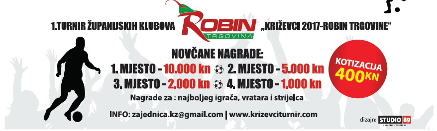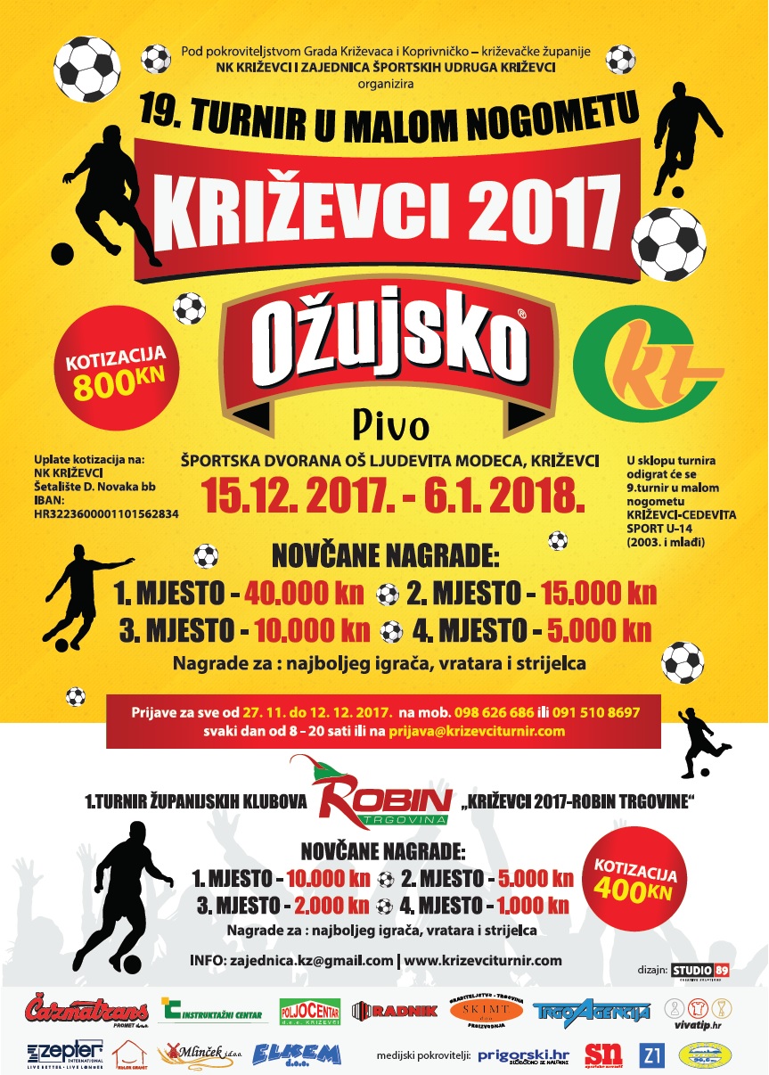 U petak, 15. prosinca u sportskoj dvorani OŠ Ljudevita Modeca počinje 19. izdanje malonogometnog turnira Križevci Ožujsko KTC i 1. turnira županijskih nogometnih klubova Robin Trgovine. Organizatori turnira su Nogometni klub Križevci i Zajednica športskih udruga Križevaca pod gradskim i županijskim pokroviteljstvom. Na prošlotjednoj konferenciji za novinare turnir su najavili križevački gradonačelnik Mario Rajn, direktor turnira i predsjednik NK Križevci Damir Kemenović i tajnik Zajednice športskih udruga Draženko Kovačić.