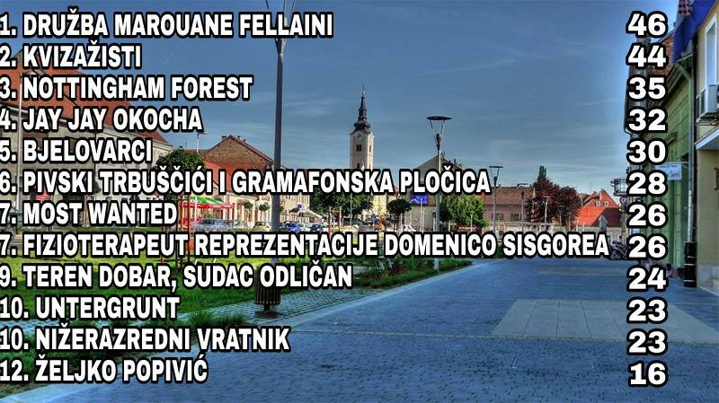 Pobjednik kviza je križevačka ekipa “Družba Marouane Fellaini”, inače po dobi članova najmlađa, od kojih su dvojica bili dijelom pobjedničkih ekipa na dva izdanja Kvizorame. Pobjedu je “Družba” odnijela u napetoj završnici, s dva boda ispred križevačke ekipe “Kvizažisti” (prvoplasirane nakon oba kruga). Trećeplasirana je ekipa “Nottingham Forest”.