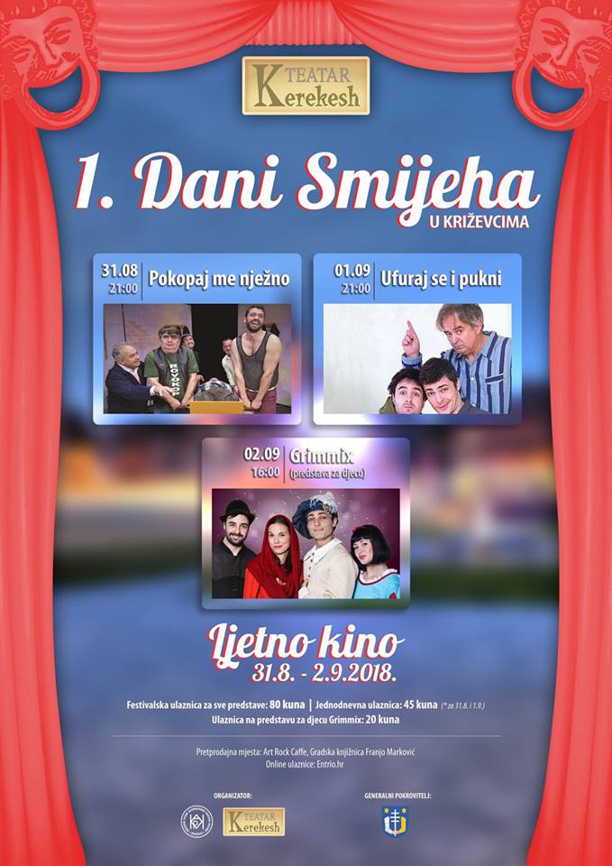 Udruga K.V.A.R.K. u suradnji sa Kerekesh Teatrom predstavlja prvo izdanje kazališne manifestacije “Dani smijeha” koje će se održati od 31. kolovoza do 2. rujna 2018. godine na otvorenom prostoru Ljetnog kina u gradu Križevcima.
