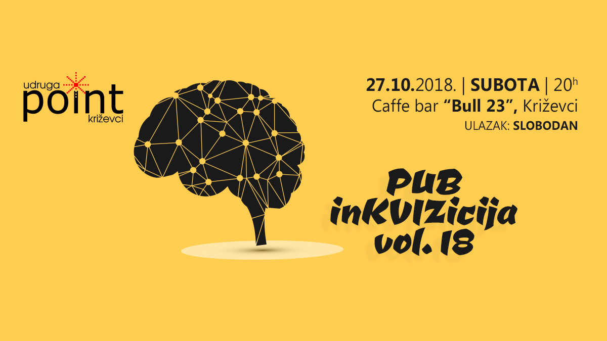 E pa, slijedeći tumačenje značenja broja 18, kviz-producenti iz udruge P.O.I.N.T. zamislili su da će 18. zasjedanje pub inKVIZicije, održavanje najpopularnijeg pubkvizaškog natjecanja u Križevcima, biti novi početak. Za novu sezonu restrukturiran je kviz, odabrana je nova lokacija njegovog odvijanja, s ciljem da tako bude i ubuduće, ili barem što češće, i s novom koncepcijom: jedna tematska rubrika, jedna asocijativna, treća je glazbena i na kraju “opća”, s tim da je glazba i u prvoj i ostalima po potrebi, kao i dosad, a bit će i više slikovnih prikaza.
