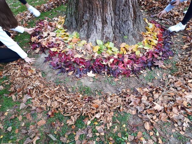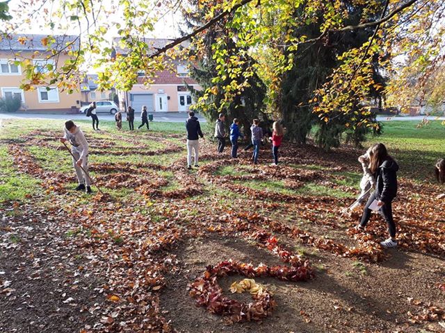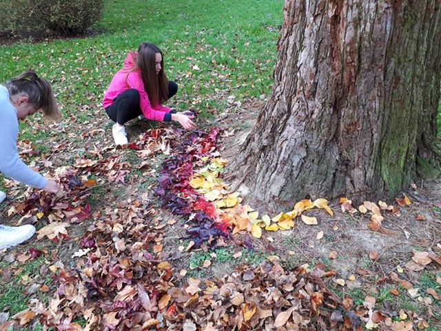 DJEČJE IZRAŽAVANJE Jedan od školskih sati likovne kulture učenici osmog razreda Osnovne škole “Vladimir Nazor” Križevci, s učiteljicom likovne kulture Ana-Marijom Smoljanec, izašli su iz učionice i stvarali u suglasju s prirodom. Bilo je šteta ne iskoristiti pogodne vremenske prilike i prekrasno lišće pa su se učenici izrazili, pomoću land art intervencije, zanimljivim apstraktnim formama. U nastavku pogledajte kako je to izgledalo u parku ispred škole.