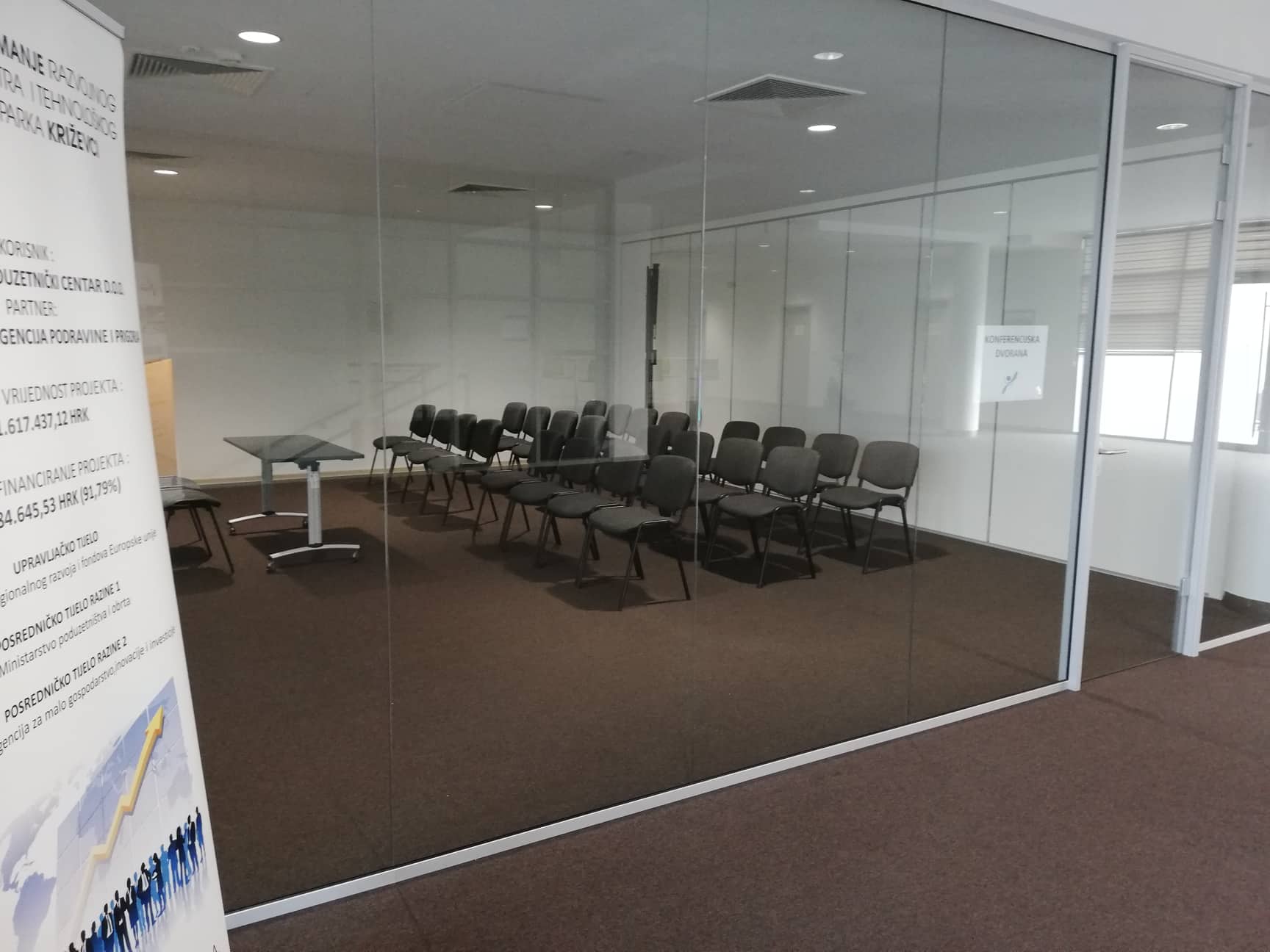 Razvojni centar i tehnološki park Križevci dobio dvije male, odnosno jednu veću konferencijsku dvoranu. Riječ je o prostoru na katu tehnološkog parka koji je moderno uređen u konferencijski prostor. Prostor je zagrađen staklenim zidovima, a na sredini se nalazi pregradni zid koji se vrlo jednostavno može sastaviti i tako po potrebi pretvoriti jedan veći prostor u dva manja.