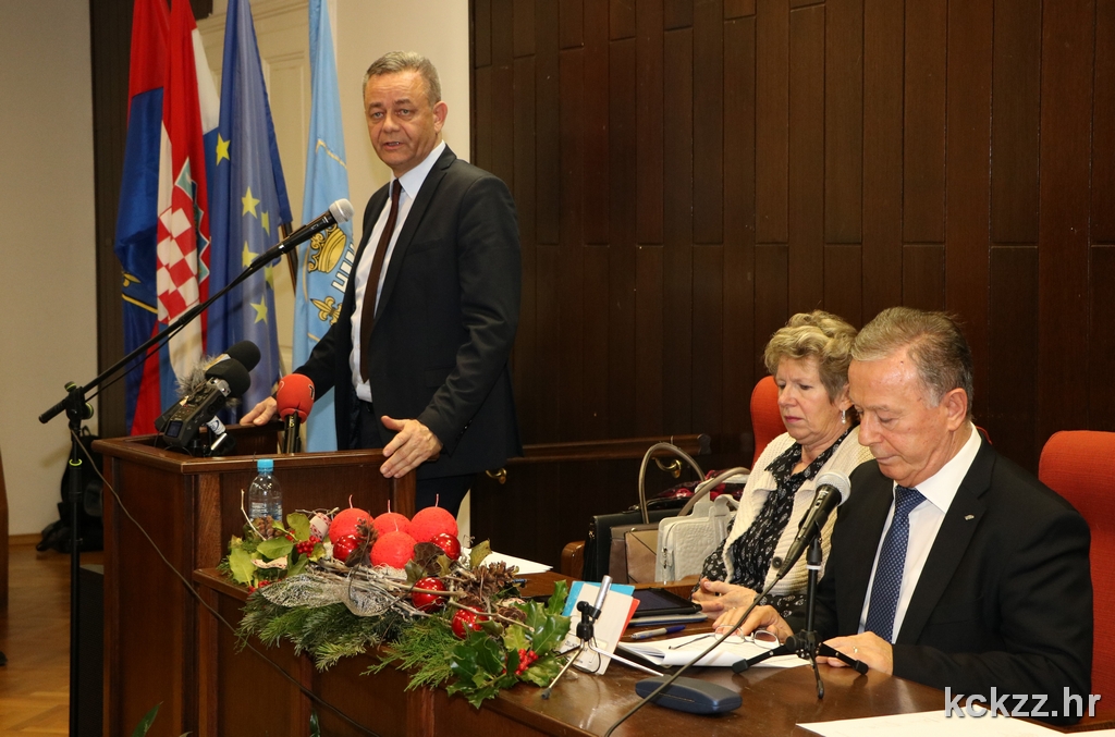 „Ukupno su za sve decentralizirane funkcije iz namjenskog dijela stope poreza na dohodak u iznosu od 7.208.600 kuna i iz pomoći izravnanja planirana sredstva u iznosu od 41.400.877 kuna, odnosno sveukupno za financiranje decentraliziranih funkcija 48.609.477 kune. Moram još jednom ponoviti kako ćemo do kraja ove godine uprihodovati iz fonda izravnanja oko 5,7 milijuna kuna. Planirana su i sredstva pomoći, od čega se najviše odnosi na sufinanciranje prijevoza učenika srednjih škola u iznosu od 11 milijuna kuna i za najam Gimnazije „Fran Galović“ Koprivnica u iznosu od 3,3 milijuna kuna. Proračun za 2019. godinu planiran je kao prijelazno razdoblje između razdoblja u kojemu smo imali određenih financijskih problema i na neki način bili suočeni s neplaniranim gubitkom najvećeg dijela prihoda, posebno prihoda s osnovu rente na mineralne sirovine koji je bio manji za 12 milijuna kuna. Sljedeću godinu promatramo kao godinu apsolutne proračunske i financijske konsolidacije i kao period za pripremu razvojnih projekata, te smatramo kako ćemo zajedno s našim proračunskim korisnicima, s našom Razvojnom agencijom PORA-om, sigurno to iskoristiti na najbolji mogući način.“, pojasnio je župan.
