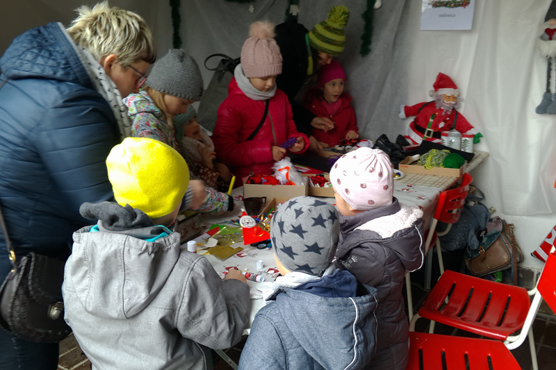 Profesorica Rađa održala je u sklopu sajma dvije radionice za djecu na kojima su mališani izrađivali ukrase za bor od drvenih štapića, vune, kartona, pompona i rola toalet papira. Svečanom ozračju pridonijela je i Križevačka djevojačka straža.