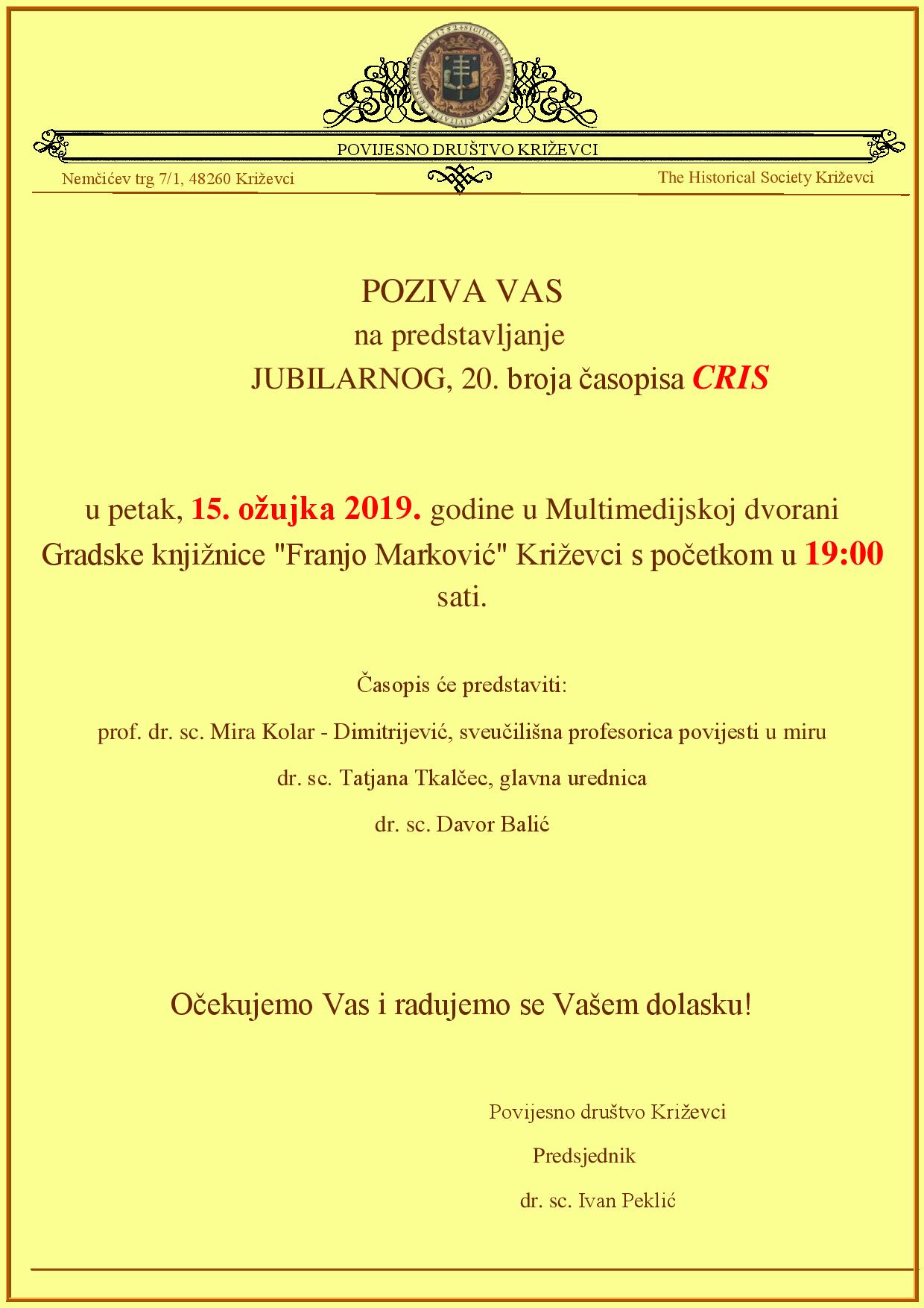 U petak, 15. ožujka, predstavljanje 20. broja časopisa Cris