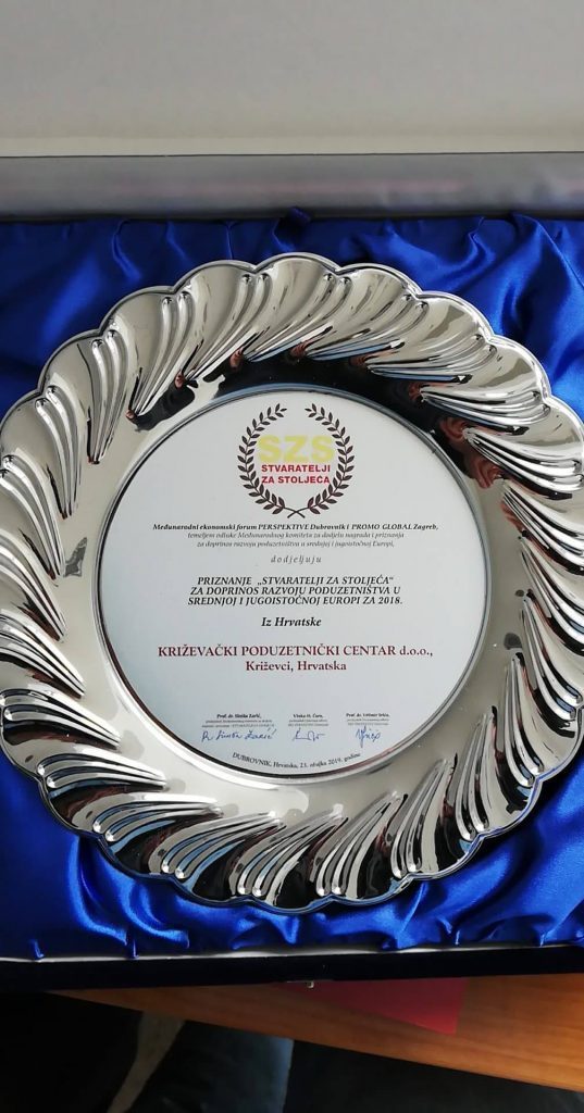 U sklopu Regionalnog summita poduzetnika Srednje i Jugoistočne Europe naziva „300 najboljih“ Križevačkom poduzetničkom centru uručena je nagrada i priznanje „Stvaratelji za stoljeća“ za doprinos razvoju poduzetništva u srednjoj i jugoistočnoj Europi. Regionalni summit poduzetnika organizirao je Međunarodni forum Perspektive koji je sastavljen od uglednih poduzetnika, ekonomista i znanstvenika iz cijele regije.