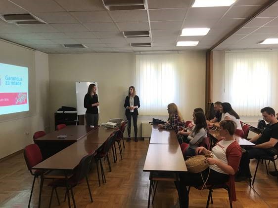 Nakon uvodnih riječi viša stručna savjetnica za profesionalno informiranje i obrazovanje Mihaela Hrlec i Martina Car voditeljica informativnog centra Infodesk održale su prezentaciju u kojoj je istaknuto kako je istraživanje interesa i potreba mladih Koprivničko-križevačke županije pokazalo da 51% mladih razmišlja o pokretanju vlastitog posla, a 61% njih pokrenulo bi posao kad bi imali priliku primiti potporu. Relativno je skroman udio informiranih (34%) i onih koji ističu dostupnost informacija (43%), a samo 37% ih zna gdje mogu doći do određenih informacija.