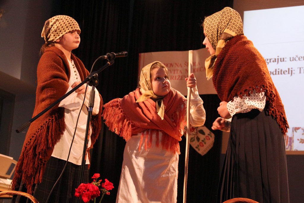 Učenice PŠ Vojakovački Osijek nasmijale su publiku scenskom igrom Tri gluhe koju su pripremile uz pomoć učitelja Tihomira Pleše.
