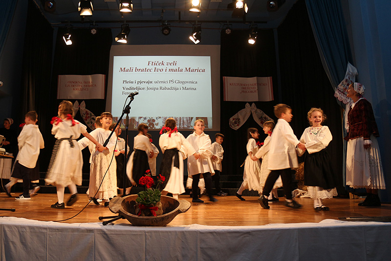 Učenici PŠ Glogovnica otpjevali su i otplesali pjesme Ftiček veli i Mali bratec Ivo i mala Marica. Pripremile su ih učiteljice Josipa Rabadžija i Marina Ferendiš.