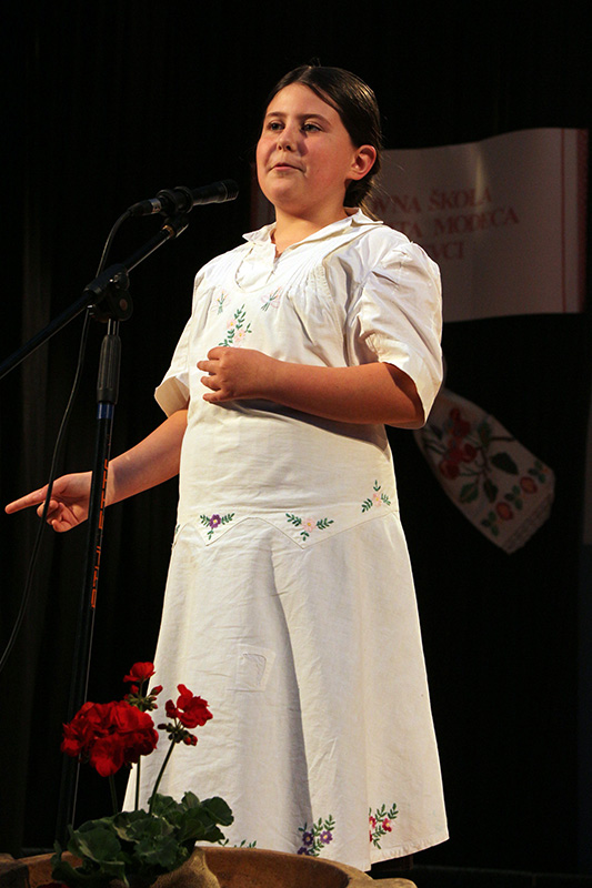 Lina Blažinčić iz PŠ Veliki Raven recitirala je pjesmu Cura z Ravna za što ju je pripremila učiteljica Jasmina Borošak.