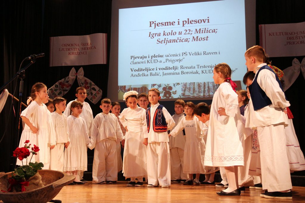Učenici PŠ Veliki Raven uz članove KUD-a „Prigorje” zabavili su publiku pjesmama i plesovima Igra kolo u 22, Milica, Seljančica i Most.