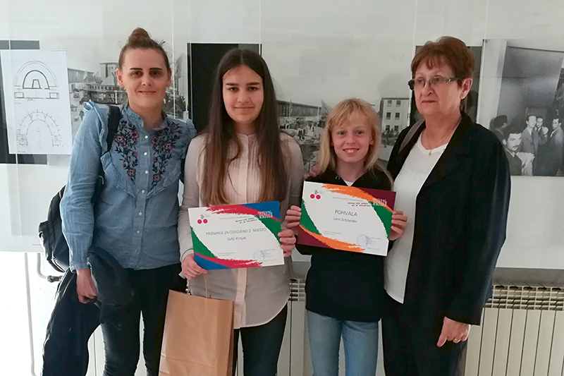 Sofija Krnjak, učenica 8. d razreda (voditeljica Martina Iveković), dobitnica je druge nagrade za kratku priču „Predivan dan” (u kategoriji od 14 do 16 godina), a Lena Schneider iz 3. c razreda (učiteljica Ivka Kajganić) pohvaljena je za priču „Neobična igračka” napisanu na njemačkom jeziku (kategorija od 8 do 10 godina).