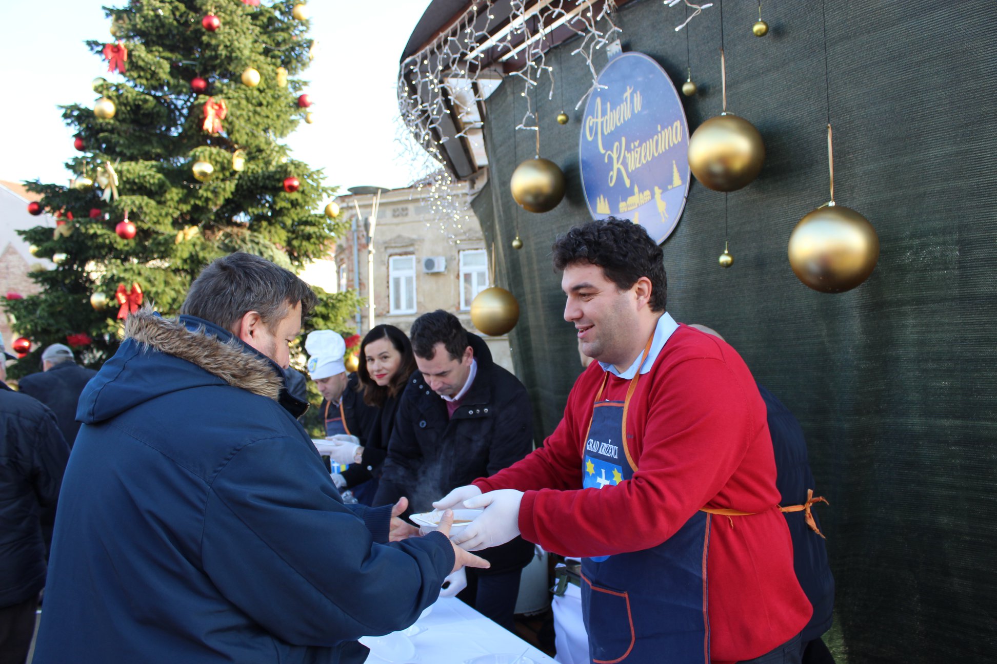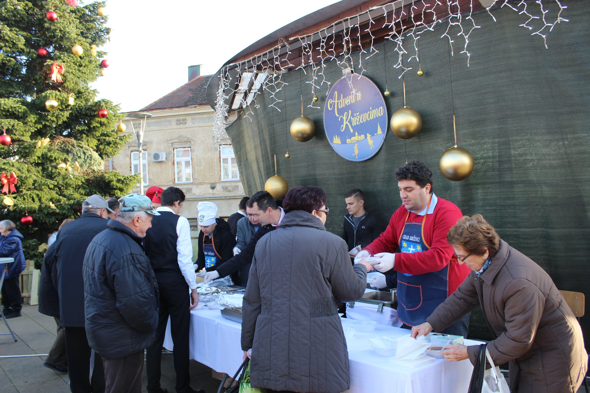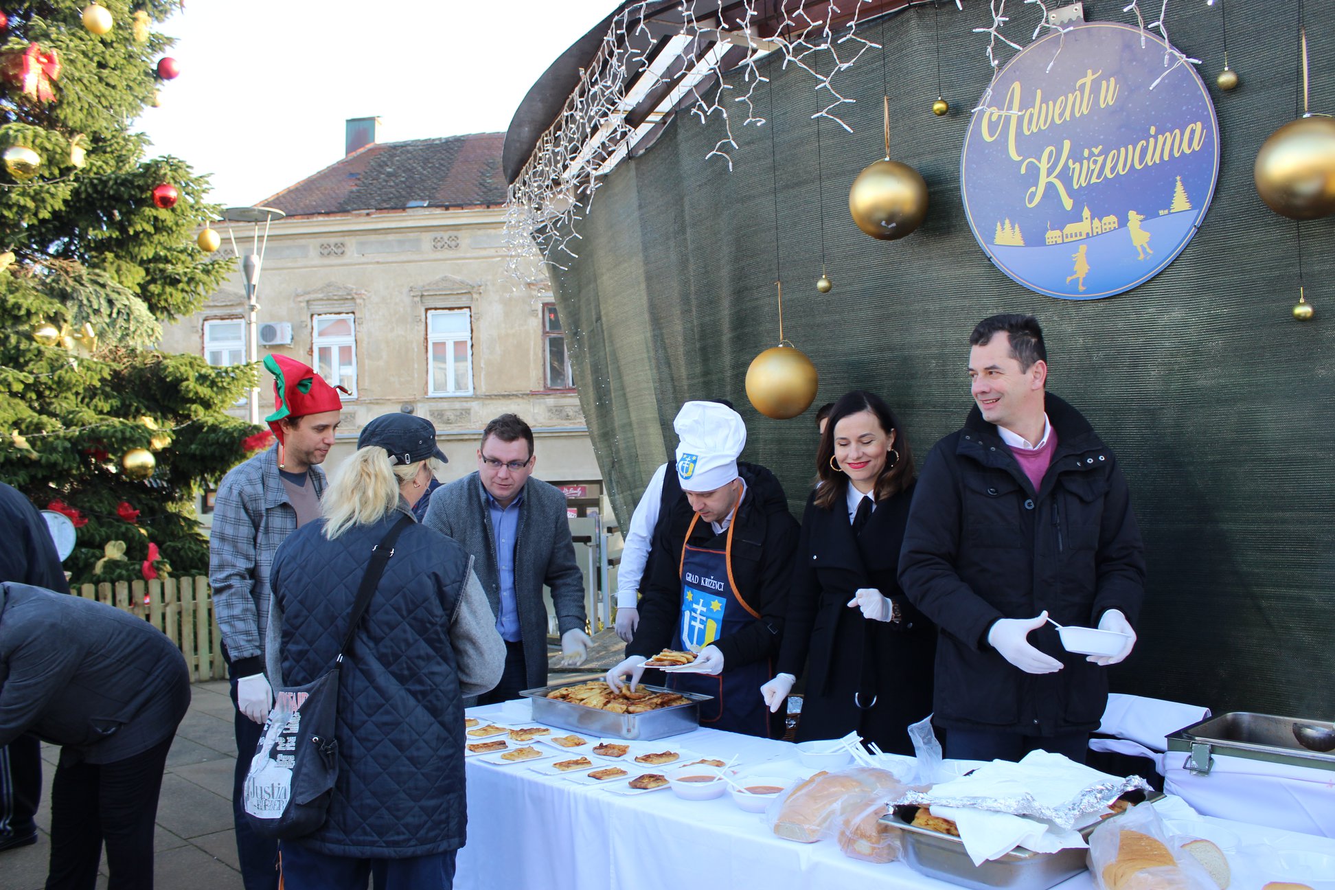 Na Adventu u Križevcima jučer je održano novo druženje. Uz lijepo vrijeme i veselo raspoloženje na Strossmaerovom trgu održan je Božićni domjenak za građane. Grad Križevci počastio je građane autohtonim križevačkim jelima – “Križevačkim kotlićem” i “Ponakličima”.
