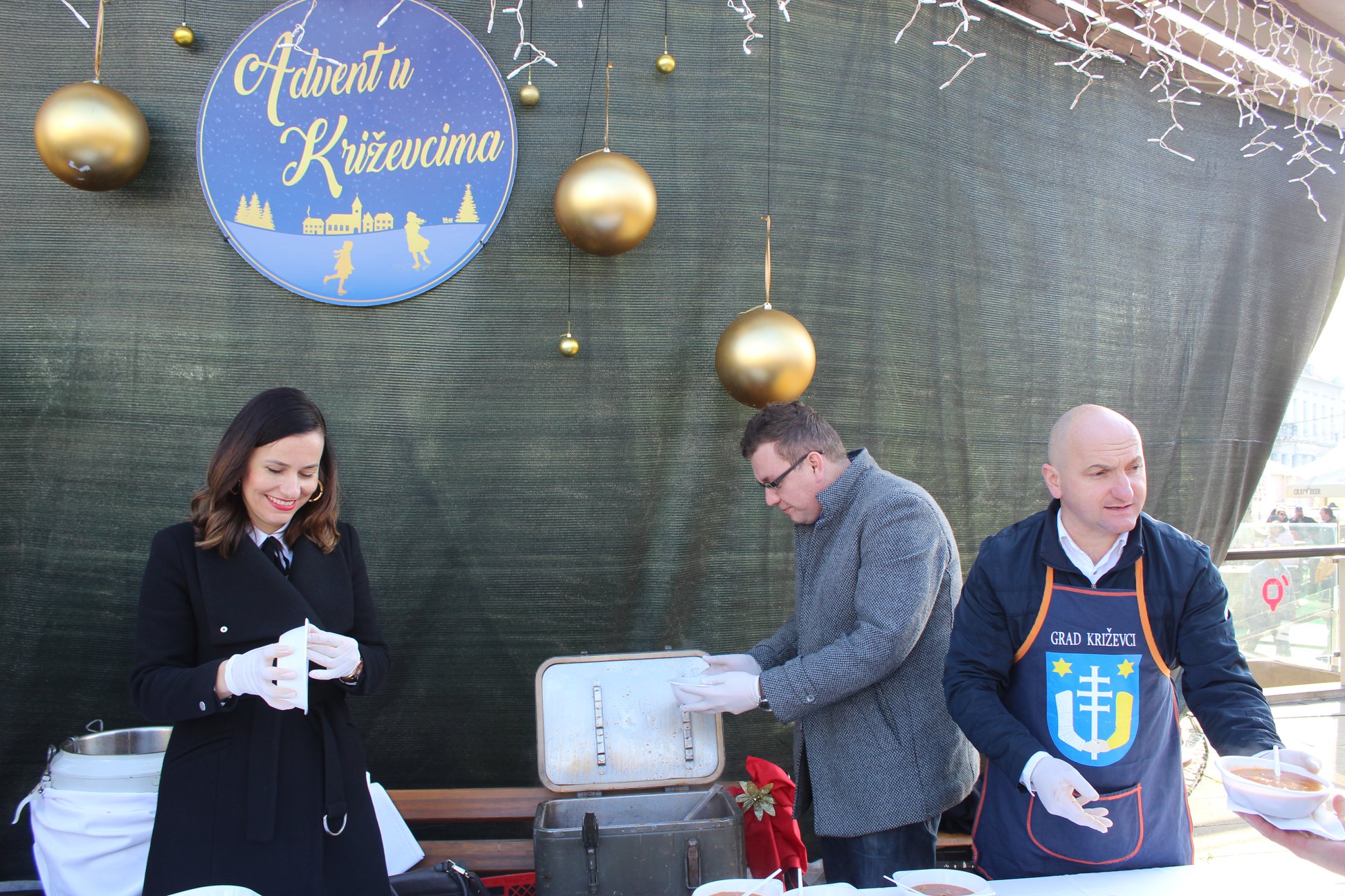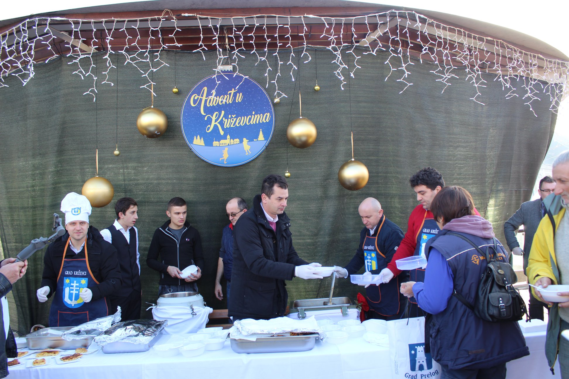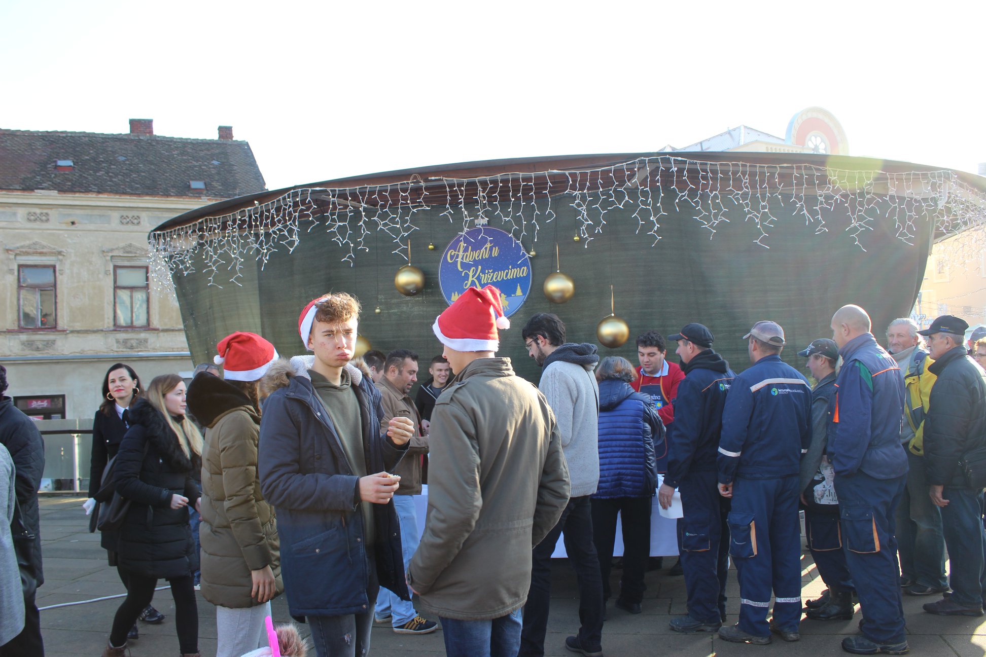 Na Adventu u Križevcima jučer je održano novo druženje. Uz lijepo vrijeme i veselo raspoloženje na Strossmaerovom trgu održan je Božićni domjenak za građane. Grad Križevci počastio je građane autohtonim križevačkim jelima – “Križevačkim kotlićem” i “Ponakličima”.