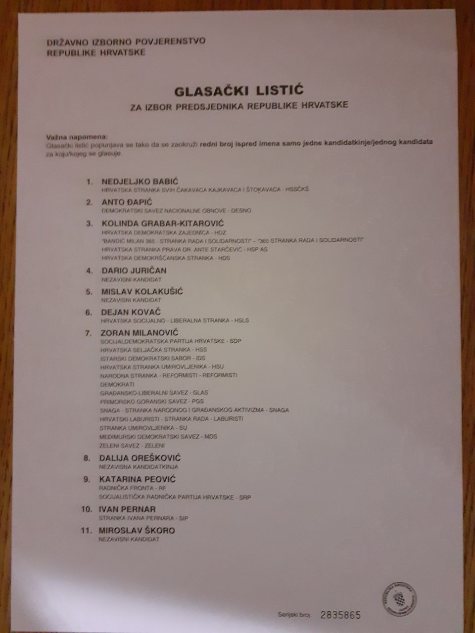 Na izbore za hrvatskog predsjednika ili predsjednicu do 16:30 sati izašlo je milijun 343 tisuće birača, što je 103 tisuće više nego 2014. godine, javlja HINA. To je 38,8 posto od tri milijuna 855 tisuća birača, pokazali su rezultati koje je objavio Državno izborno povjerenstvo (DIP) sa gotovo 95 posto od 6.533 biračka mjesta koliko ih je za izbore otvoreno u Hrvatskoj i inozemstvu.