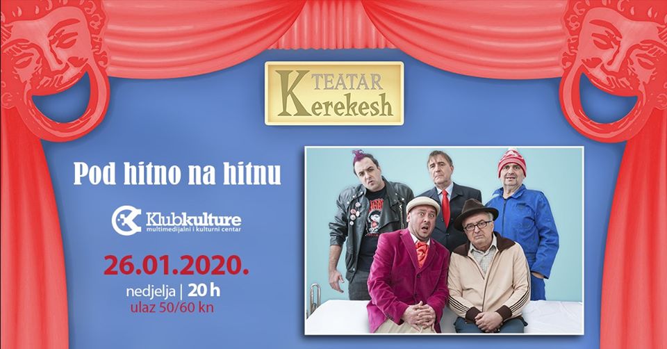 Kerekesh Teatar ponovo dolazi u Križevce, ovaj put sa predstavom “Pod hitno na hitnu” koja će se odigrati 26.01.2019. u Velikoj dvorani Hrvatskog doma u Križevcima!