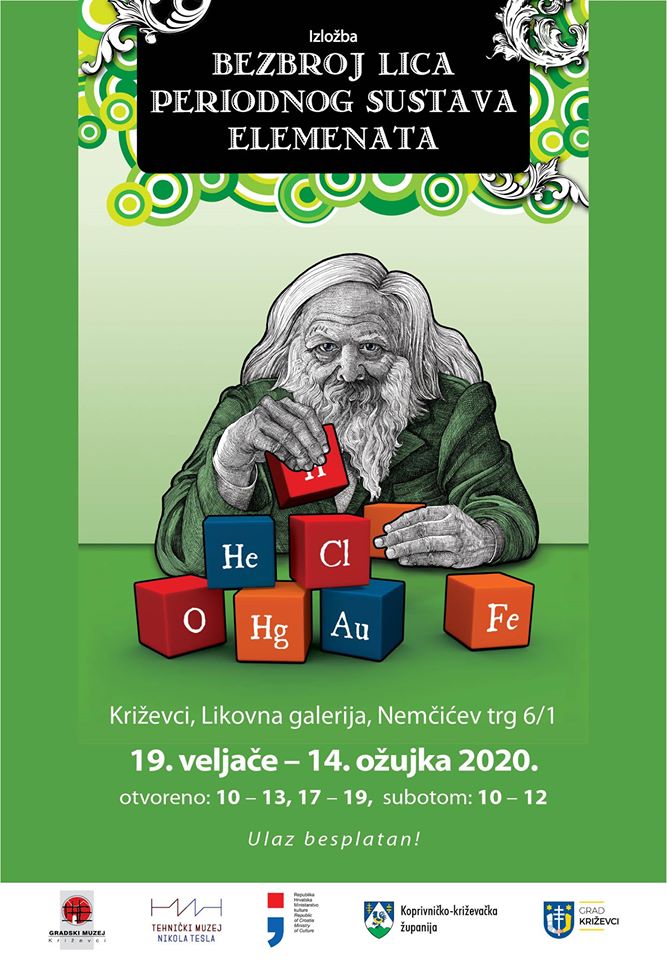 Izložba “Bezbroj lica periodnog sustava elemenata” prvi puta predstavljena je u Tehničkom muzeju Nikola Tesla u Zagrebu 2010., a u Križevcima je otvorena u srijedu, 19. veljače u Likovnoj galeriji Gradskog muzeja Križevci. Upravo ovom izložbom Likovna galerija Gradskog muzeja Križevci otvara vrata posjetiteljima u ovogodišnji galerijski izložbeni program. Izložbom se istovremeno prisjećamo Križevčanina, akademika Drage Grdenića.