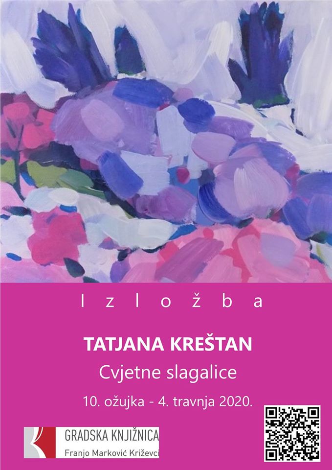 Iz Gradske knjižnice Franjo Marković pozivaju na otvorenje izložbe slika Tatjane Kreštan – Cvjetne slagalice. Otvorenje je danas, 10. ožujka 2020. u 18 sati.