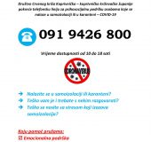 Društvo Crvenog križa Koprivničko-križevačke županije pokrenulo je telefonsku liniju za psihosocijalnu podršku osobama koje se nalaze u samoizolaciji ili u karanteni zbog koronavirusa. Ukoliko imate potrebe možete se obratiti za pomoć stručnjacima na telefonski broj 091 9426 800 koji je za sve građane dostupan od 10 do 18 sati. Stručne osobe koje dežuraju na telefonu pružit će vam emocionalnu podršku te praktične informacije kako se lakše nositi sa situacijom. Ovim putem još jednom apeliramo na odgovorno ponašanje i pridržavanje svih preporuka, mjera i uputa pridržavanja higijenskog standarda (temeljito pranje ruku, izbjegavanje rukovanja, dezinfekcija prostora) te izbjegavanje zadržavanja u prostorima u kojima boravi više ljudi, a sve u cilju kako bi se spriječilo potencijalno prenošenje koronavirusa.