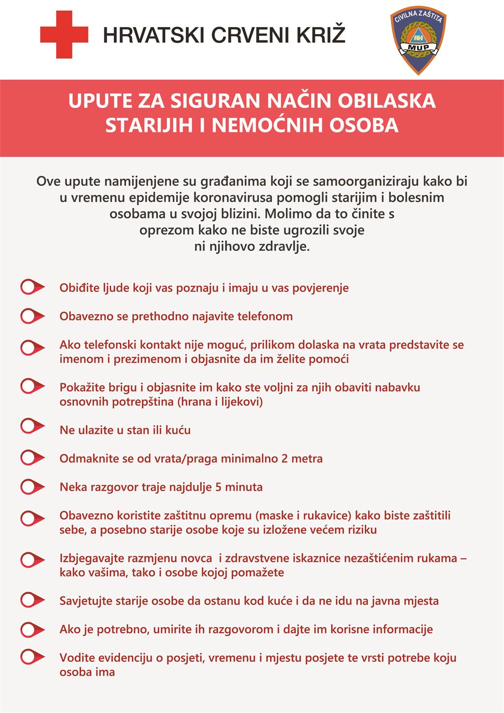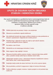 Donosimo također i upute za siguran način obilaska i primanja pomoći za starije i nemoćne osobe.