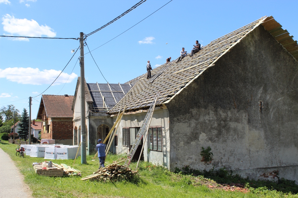 Nakon rušenja starog vatrogasnog doma, mještani su čistili ciglu i uređivali okoliš. Što se tiče radova na društvenom domu, nakon što je uklonjeno staro krovište, mještani su u subotu započeli s radovima na adaptaciji novog krova.
