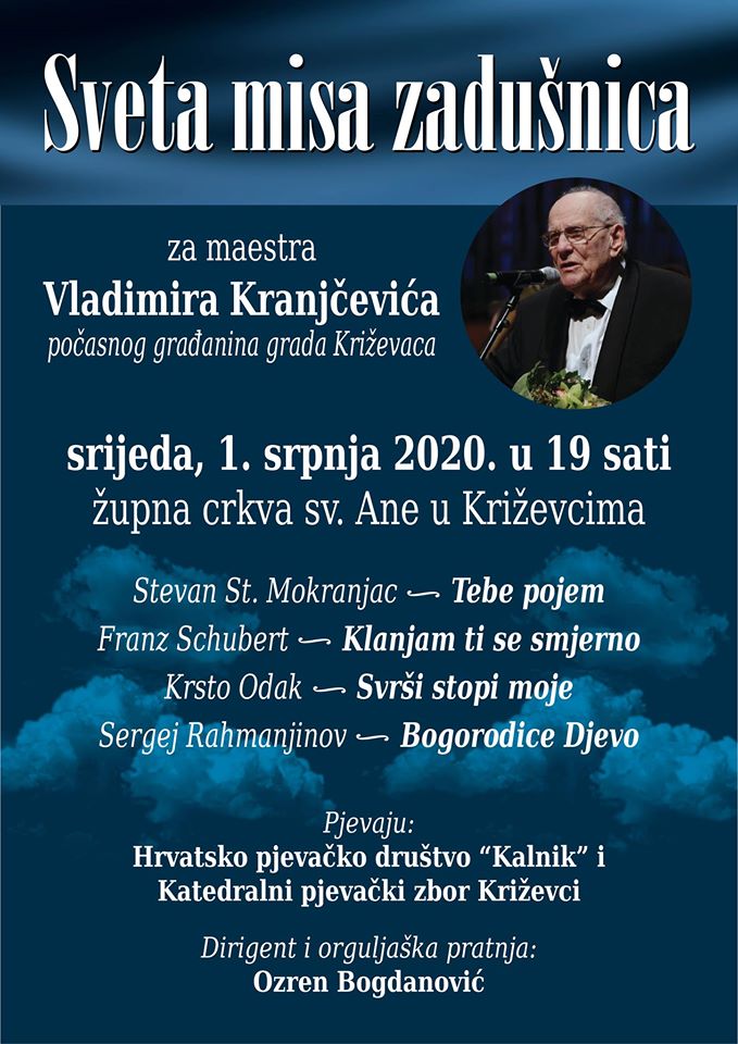 No, ukidanjem brojnih epidemioloških mjera, održat će se sveta misa zadušnica za Vladimira Kranjčevića i to u srijedu, 1. srpnja u župnoj crkvi Sv.Ane. Ovaj će događaj uveličati HPD Kalnik i Katedralni pjevački zbor Križevci, kojima će dirigirati Ozren Bogdanović.