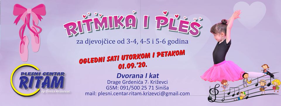 Predbilježbe za ritmiku primaju se do 28.08.2020. za sezonu 2020/2021. Za prijavu pošaljite e-mail na: plesni.centar.ritam.krizevci@gmail.com.