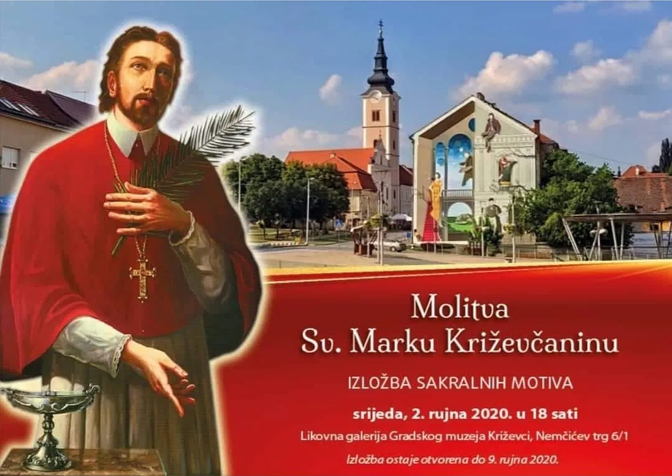Križevački likovni krug poziva svoje sugrađane, autore likovnih djela, prijateljske udruge i sve ljubitelje umjetnosti na otvorenje tradicionalne sakralne izložbe povodom sv. Marka Križevčanina, 2. rujna u 18:00 sati u Likovnu galeriju Gradskog muzeja Križevci.