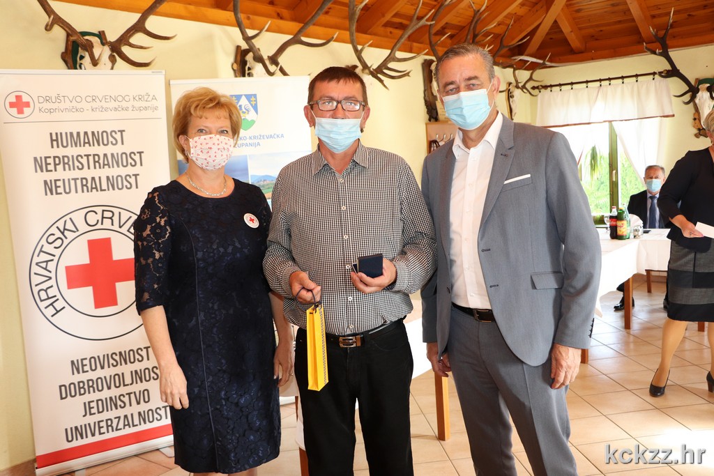 Ravnateljica županijskog Društva Crvenog križa Adela Sočev predstavila je rezultate koje su gradska društva Crvenog križa postigla u darivanju krvi u 2019. i 2020. godini, napomenuvši: „Prošle su godine na području županije sva tri društva prikupila 7.938 doza krvi, a krv je dalo 6.569 muškaraca i 1.369 žene. Od 2012. godine Koprivničko-križevačka županije je prva u Republici Hrvatskoj po broju darovanih doza krvi na sto stanovnika, pa tako i u 2019. godini s prosjekom od 6,87 darivanja na sto stanovnika. Posebno nas veseli što je ruku solidarnosti po prvi put pružilo 324 darivatelja, a obzirom na ove rezultate, možemo reći kako je svaki sedmi stanovnik Županije dobrovoljni darivatelj krvi. Zahvaljujem županu na prijemu u ovim okolnostima, a posebno darivateljima koji svojim dobročinstvom sudjeluju u spašavanju ljudskih života. U 2020. godini dosad je prikupljeno 5504 doze krvi, a nadam se kako ćemo akcijama u preostala tri mjeseca premašiti plan od 7.100 doza dragocjene tekućine.“