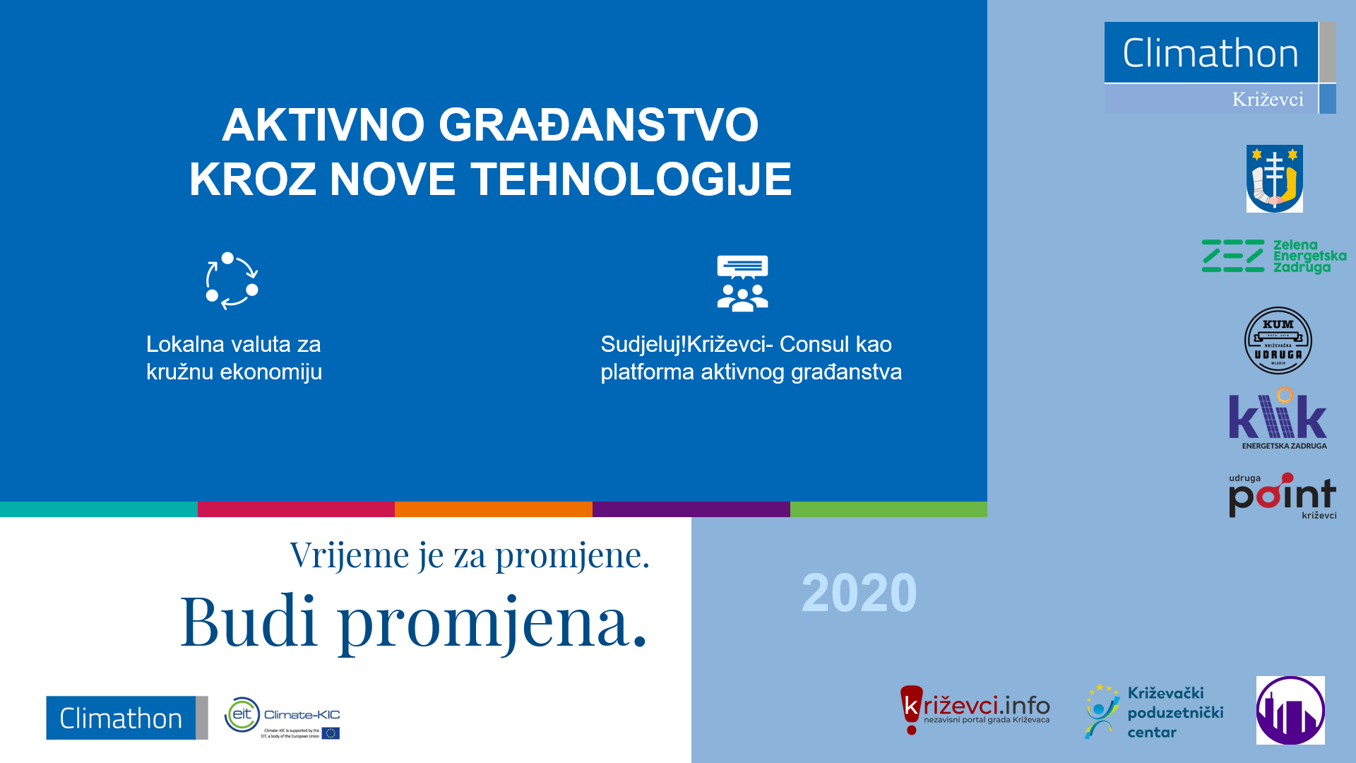 Sredinom studenog završio je prvi Climathon Križevci, a tema ovog Climathona bila je „Aktivno građanstvo kroz nove tehnologije“. Climathon je globalni pokret gradova koji klimatske promjene vide kao priliku za povezivanje, okupljanje i suradnju gradova i građana, istraživača, studenata, dizajnera, programera, kreativaca i poduzetnika oko inovacija i kreativnih rješenja kojima se ublažavaju izazovi klimatskih promjena u gradu.