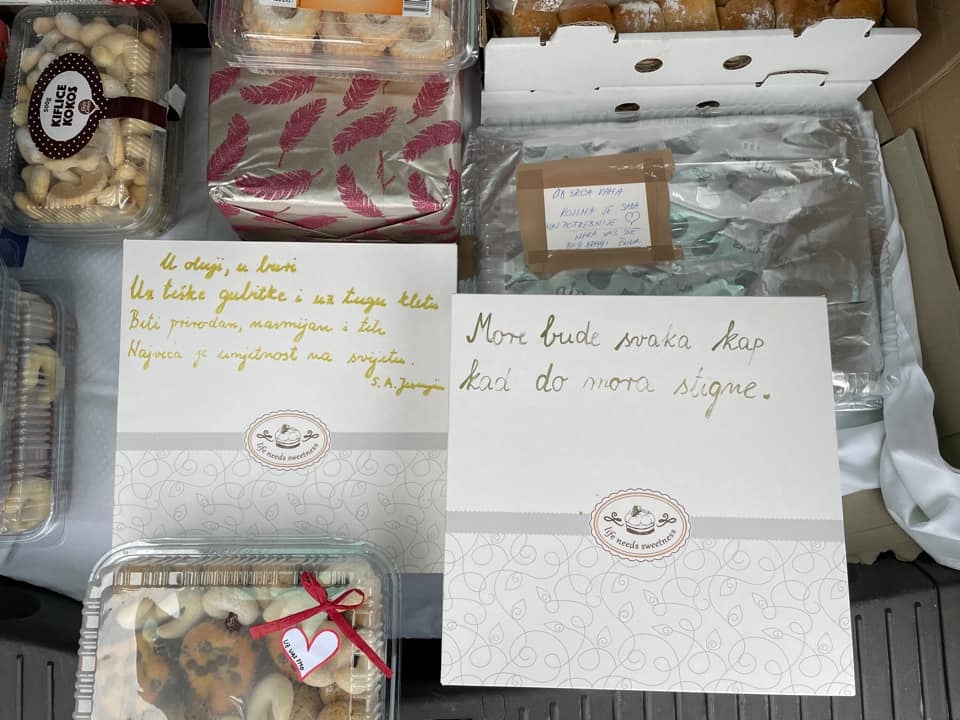 U Križevcima je prikupljanje kolača bilo na parkiralištu u Grdenićevoj ulici gdje je, prema Švageljovim riječima, odaziv bio velik, a mnogi su poslali poruke podrške za ljude na Baniji i zahvale volonterima za njihovu predanost i humanost.