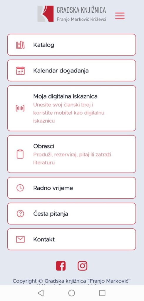 “Hvala kolegama iz Knjižnice i čitaonice “Fran Galović” Koprivnica što su nas dovukli u 21. stoljeće. Oni su razvili aplikaciju, a mi je dalje usavršavamo i prilagođavamo svojim potrebama”, rekla je ravnateljica Marjana Janeš-Žulj. Aplikacija mKnjižnica može se instalirati putem Google Play ili Apple Store platforme, a zahtijeva operativni sustav Android 5.0 i novije verzije, odnosno iOS 10.0 i novije verzije.
